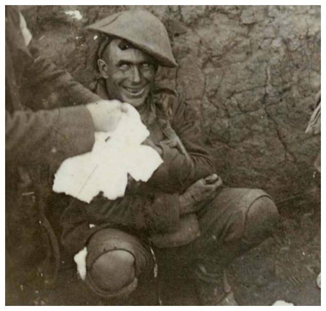 这张照片拍摄的是一战期间,英军壕沟中的一名士兵。他因被炮弹惊吓而患上了弹震症,这是一种由于战场恐惧导致的精神失常。