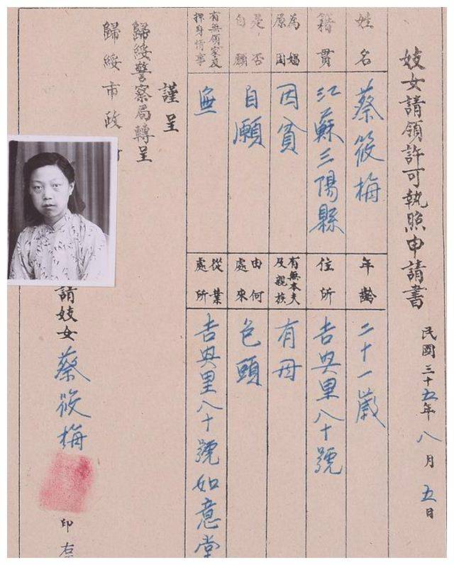 这张照片展示的是1917年民国时期两名妓女申请执业许可的场景。