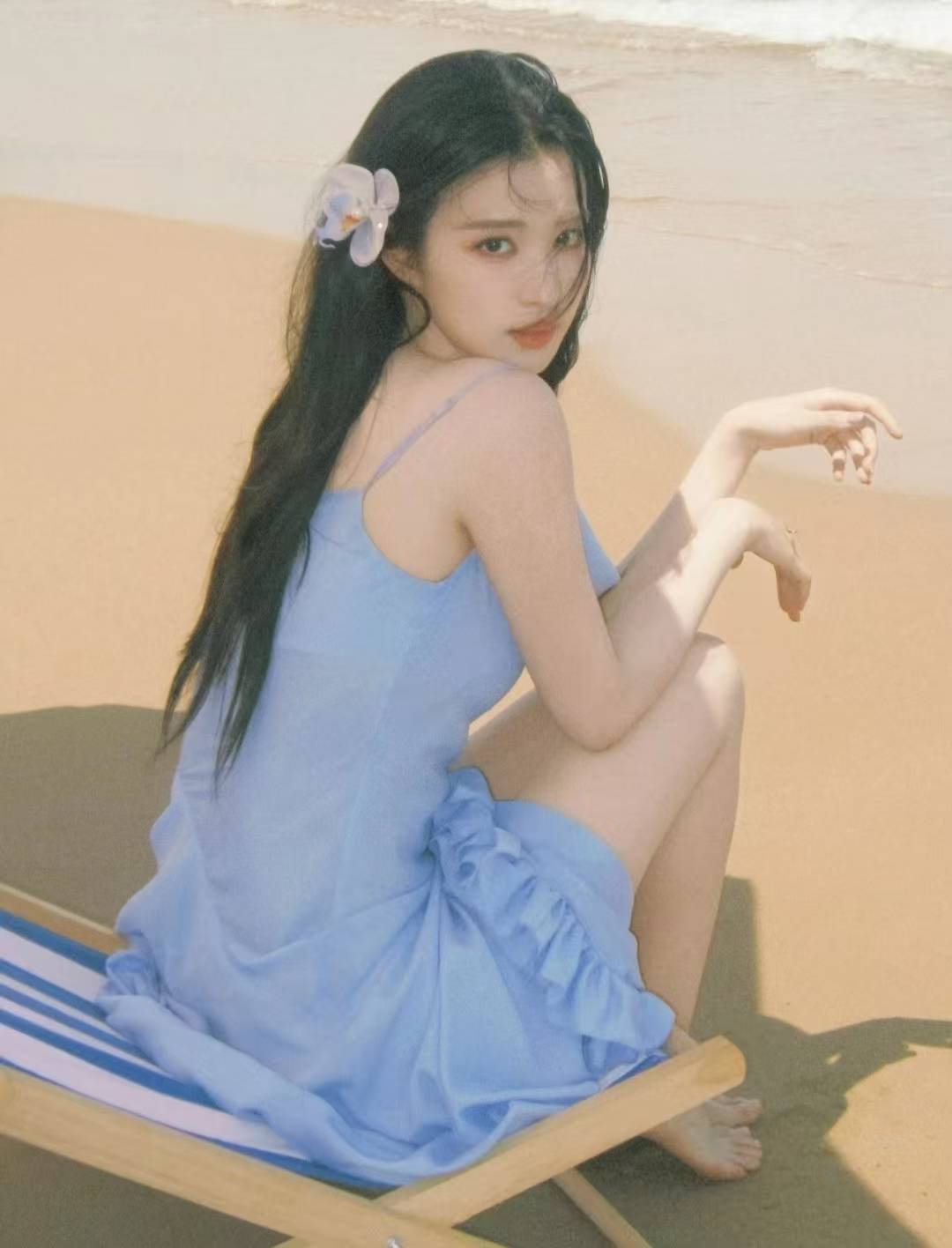 王楚然这组海边写真简直美到让人窒息!看到她穿着淡蓝色长裙在沙滩上奔跑的样子,瞬间感觉整个夏天都变得清凉起来。海风轻轻吹起她的长发,裙摆随着动作飘动,活脱脱就是从童话里走出来的海洋精灵,难怪网友都说"这才是夏天该有的样子"!先说说这条神仙裙子,淡蓝色的吊带设计简直太适合夏天了!裙子的面料看起来轻盈又飘逸,在阳光下泛着细腻的光泽,像把整个大海都穿在了身上。最妙的是裙摆的荷叶边设计,层层叠叠的褶皱随着她的动作轻轻晃动,走路时露出纤细的小腿,又纯又欲的感觉直接拉满。她光着脚丫踩在沙滩上,脚踝处的链条项链若隐若现,细节感简直绝了!再看她的造型,长发自然垂落,发间别着一朵白色的小花,清新又灵动。她的妆容也特别加分,淡淡的裸粉色口红衬得肤色更白,眼尾微微提亮的珠光眼影,在阳光下闪着细碎的光芒,像落了一片星辰。特别是她伸手去接泡泡的样子,眼神清澈又专注,嘴角带着浅浅的微笑,简直比夏日的海风还要治愈。最让人惊艳的是她坐在沙滩椅上的那张,一手撑着白色阳伞,微微仰头闭着眼睛,享受着阳光和海风,整个人都散发着慵懒随性的气息。裙摆自然垂落在沙滩上,荷叶边的设计让裙子看起来像一朵盛开的蓝色花朵,和身后的大海完美融合,每一帧都像电影截图。说真的,王楚然的气质真的太适合这种清新自然的风格了。她身上那种干净又纯粹的感觉,和海边的氛围简直是绝配。无论是光着脚丫在沙滩上奔跑,还是安静地坐在椅子上看海,她都像一幅移动的油画,让人忍不住想要定格这美好的瞬间。看完这组图终于明白为什么大家都说王楚然是"氛围感美女"了,这种不需要刻意摆拍就能自带滤镜的能力,真的太让人羡慕了。希望她以后多拍点这种神仙写真,毕竟谁能拒绝海边的蓝色精灵呢?这个夏天的心动名额,我先给王楚然投一票!