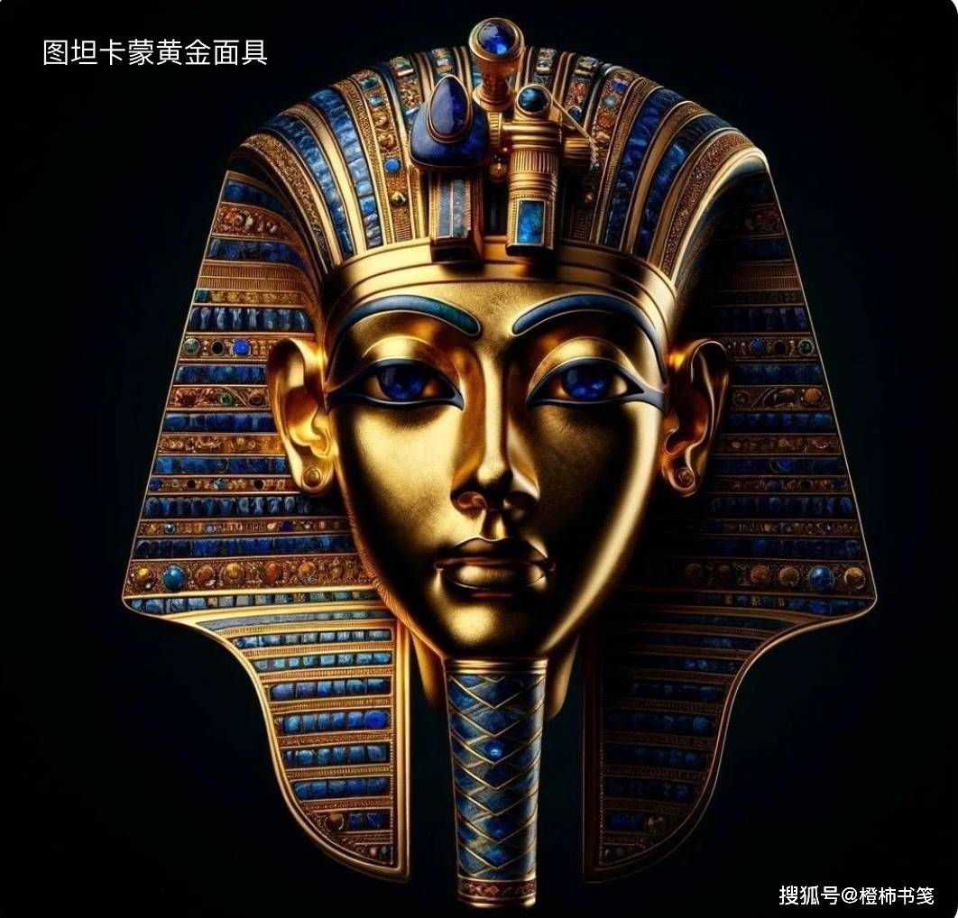 墓室中央,图坦卡蒙的金棺静静躺着。棺盖上是法老本人的黄金面具——重11公斤,镶嵌青金石、绿松石、红玛瑙。