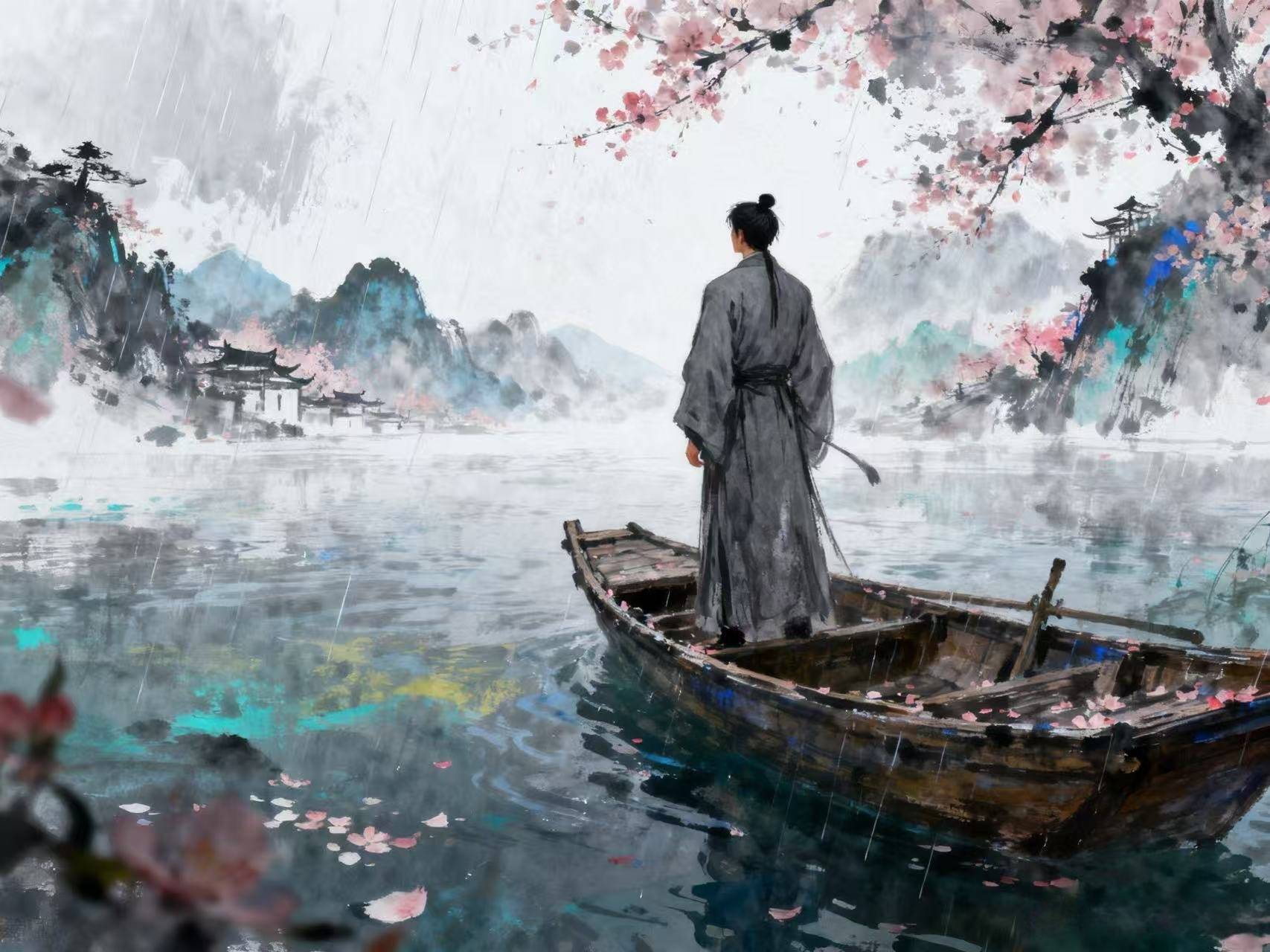 写这首诗时,李煜已经不是皇帝了。他正被押往汴京,船过长江,回望故都金陵,泪如雨下。江南江北,是他曾经的国土;三十年的帝王生涯,如今想来,像一场大梦。吴地的宫苑已经冷落,广陵的台殿也已荒凉。云笼罩着远山,像他心头千片愁绪;雨打着归舟,像他脸上万行泪水。想到兄弟四人、三百口宗室,如今都成了阶下囚,他不敢再细想下去。