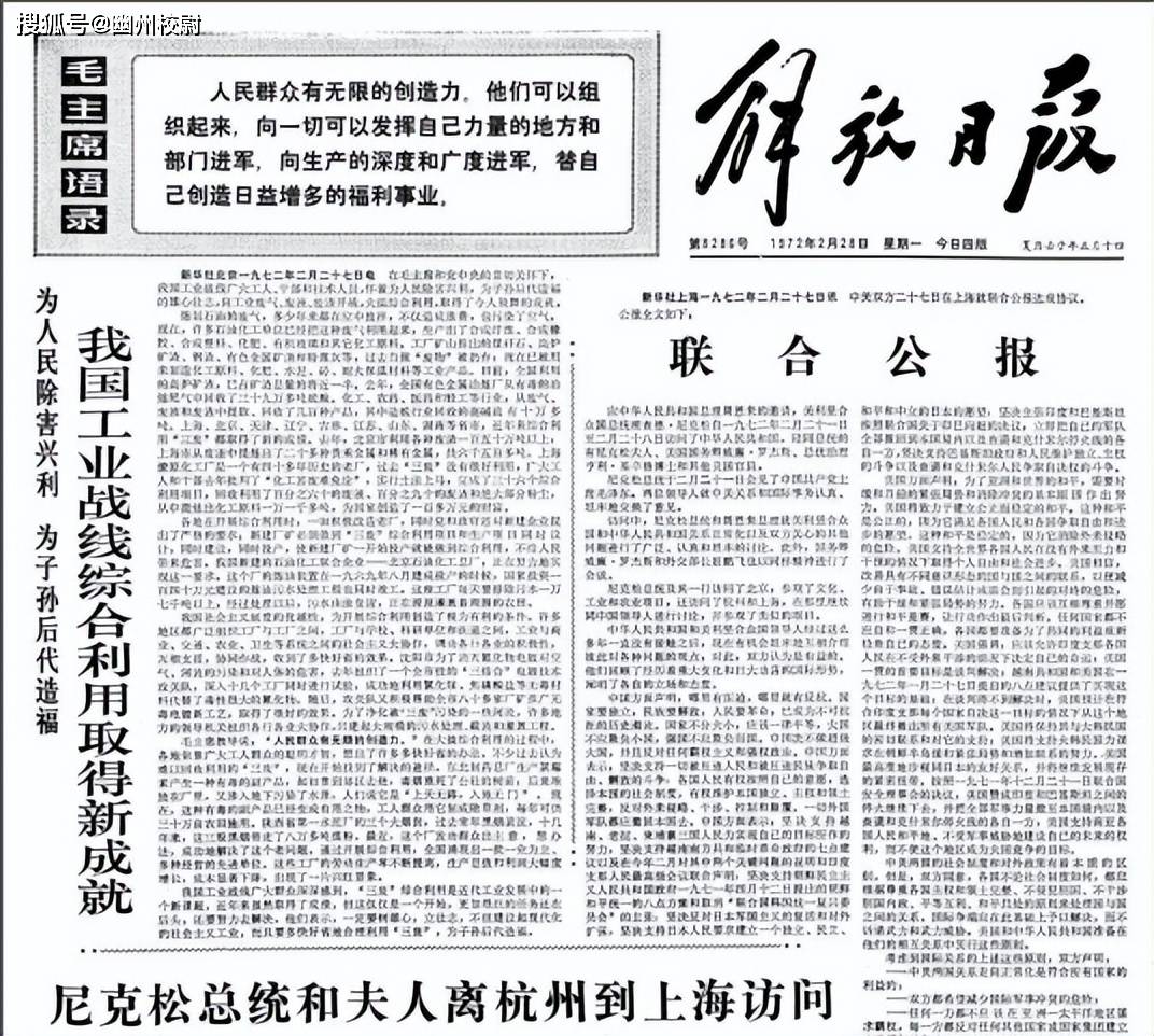 外交部将这一情况迅速报告了主席,老人家说我们没请他来,不想来可以别来,现在美国的处境更需要我们。最后我国在1971年8月份,中美联合公报上这样写道:
