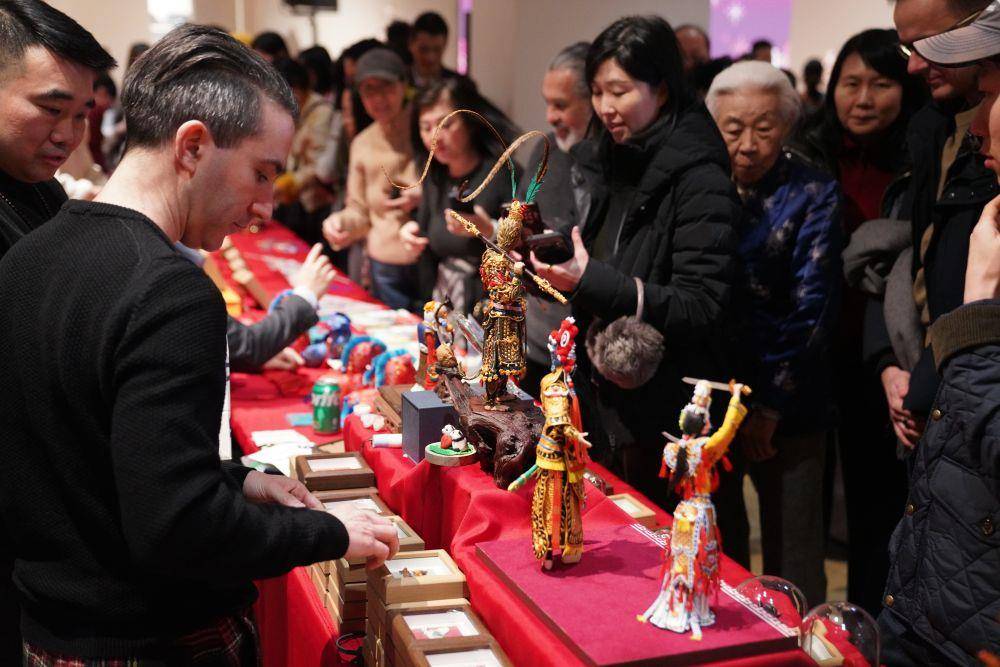 △2026年2月,在美国纽约举行的“中国味道”春节文化活动上,人们观赏面塑作品。
