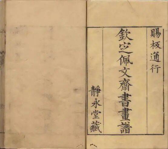 又例如,《佩文斋书画谱》静永堂本,与殿本不同,这个版本的书籍是宋骏业得到康熙皇帝的赏赐《佩文斋书画谱》雕板板片后,以御赐的“静永堂“堂号刷印的,因此在书页前会有”赐板通行“的字样,而这些又是凸显这个版本与众不同的地方所在,所以,如果这些信息无法翻开给游客,则需要借助展板呈现出来。