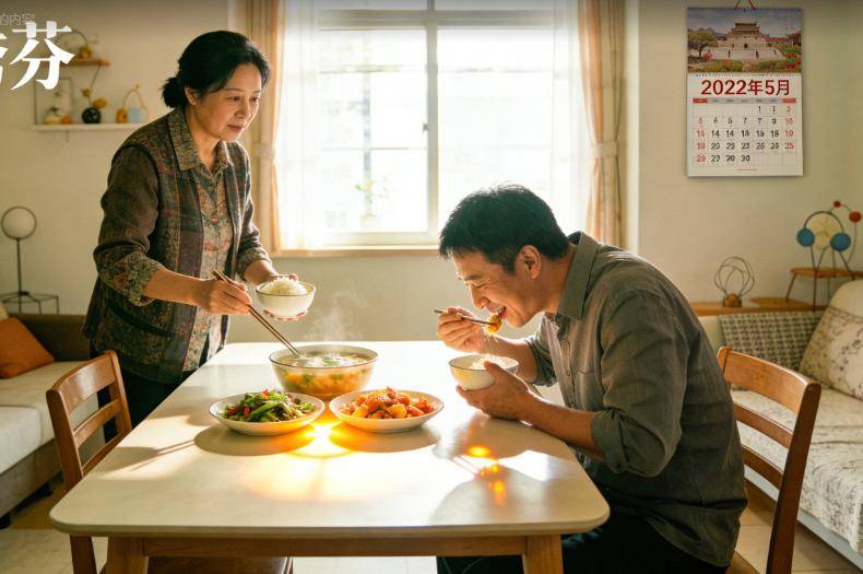 现在我每天早上起来,第一眼看见的就是秀芬忙碌的身影。她在厨房做早餐,油烟机嗡嗡响着,锅里飘出饭菜的香味。