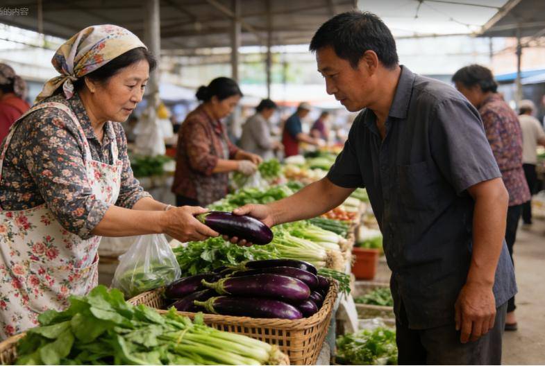 她笑了笑,说我教您,今天茄子新鲜,拿回去拌着吃清爽。西红柿也好,炒个鸡蛋下饭。