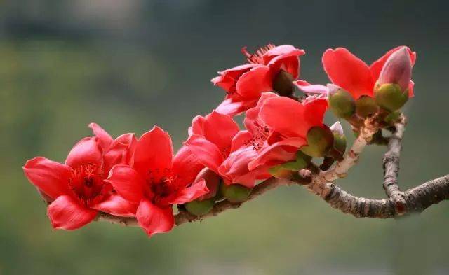 木棉花属木棉科,落叶大乔木,南方的特产,广州市的市花。花冠呈红色或橙红色,花瓣为五片,肉质,椭圆状倒卵形。雄蕊多数合生成管,排成三轮,柱头有五裂。