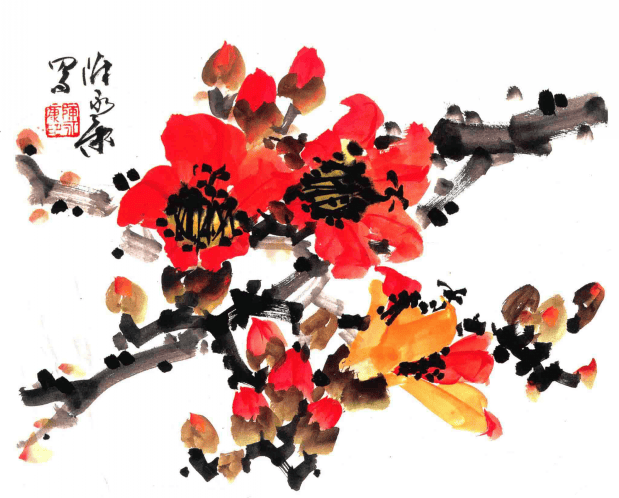 花鸟画技法:木棉花、紫荆花、凤凰花