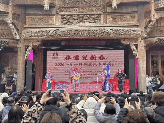古戏台飞檐翘角,赣剧唱腔婉转悠扬。乐平作为赣剧、古戏台营造技艺两大国家级非遗传承地,新春非遗氛围格外浓厚。全国“我们的节日·春节”主题活动江西主场落地乐平,老北街、赣剧楼内,古戏台营造技艺现场展示,经典赣剧惠民演出场场爆满;洪岩仙境水上古戏台连唱新春“戏宴”,18个乡镇民俗节目轮番登台;浒崦名分堂戏台、邵家村古戏台好戏不断,十里八乡村民扶老携幼听戏赏灯。