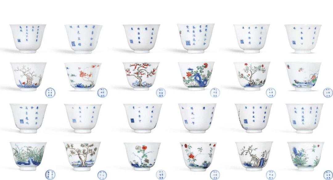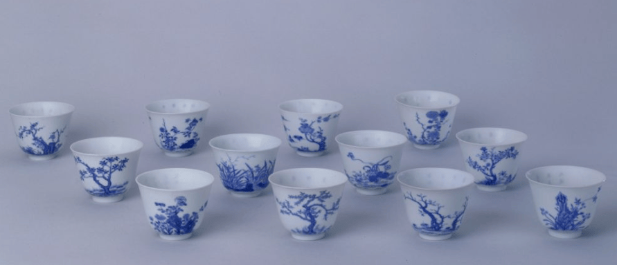 青花十二月花卉纹诗句杯