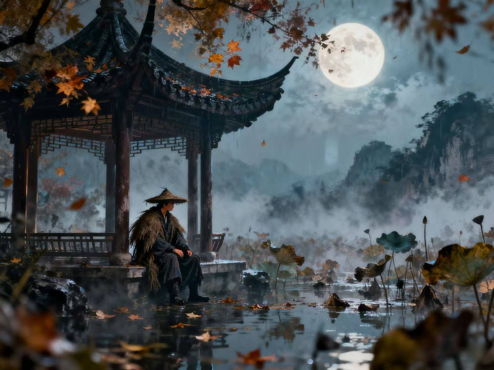 他递过来的不止是一首诗,是一种看待秋天的方式,不悲叹凋零,不感伤萧瑟,只是静静地看,看茶烟散尽,看寒花挺立,看秋水宽阔,看夕阳被揉碎。然后明白,美不是只在繁盛里,也在消瘦里;不是只在完整里,也在破碎里。
