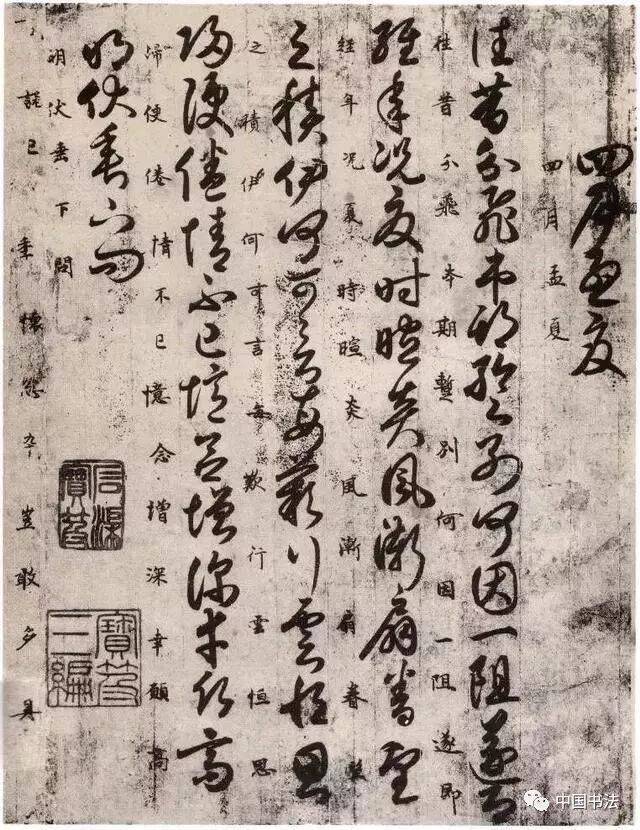 《唐人月仪帖》黄麻纸本墨迹,无款,传唐人书,又名《唐人二十月友朋相闻书》。钤有“御府宝绘”“内殿珍玩”“群玉中秘”“明昌御览”“王氏禹卿”“石渠宝笈”“嘉庆御览之宝”等鉴藏印。帖后有明解缙,清王文治等人跋。曾经金明昌内府,宋内府以为清毕源,乾隆,嘉庆,宣统朝内府收藏,原件现藏台北故宫博物馆。《石渠宝笈·三编》有著录。