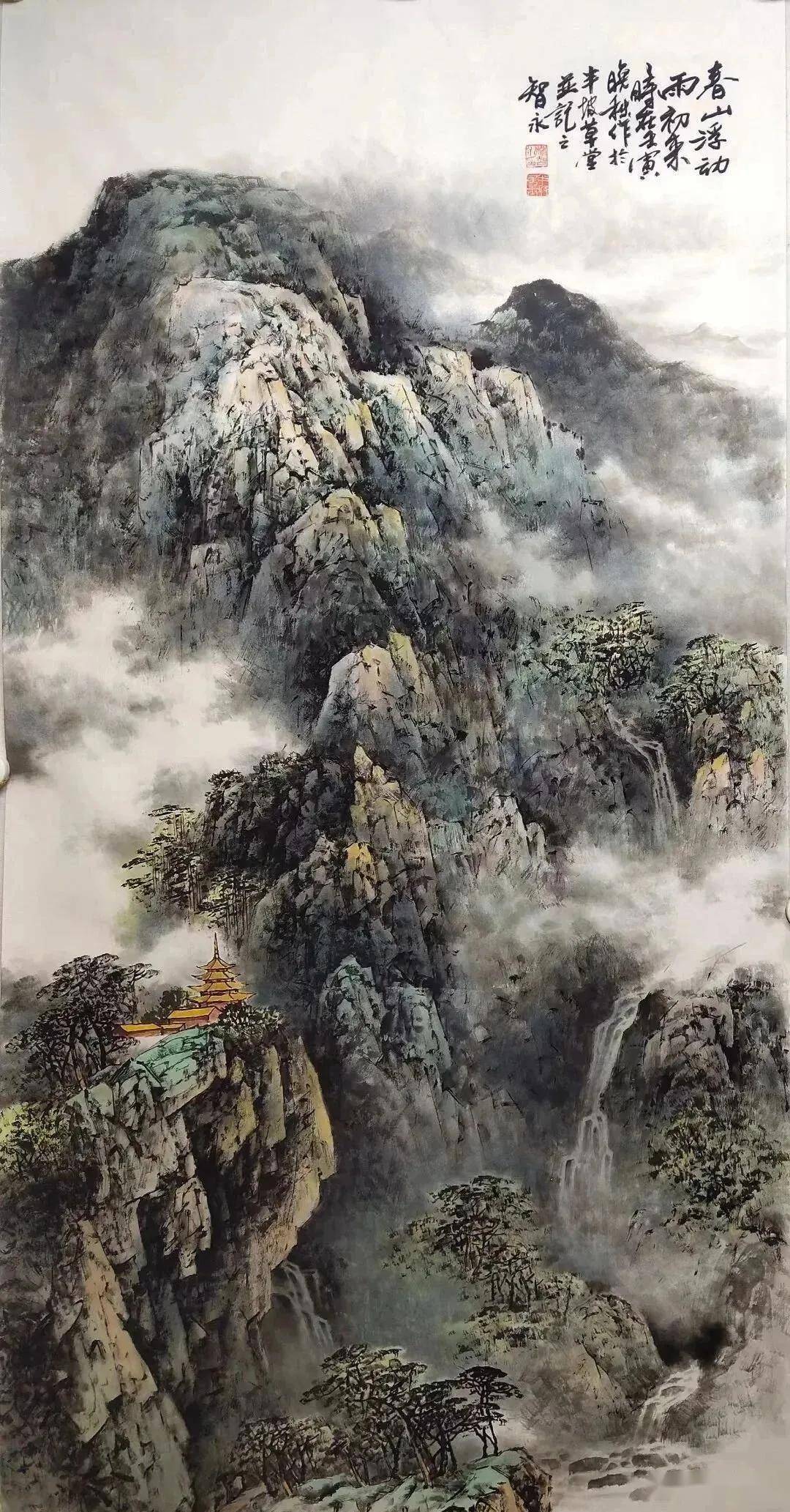 寓意:春山浮动,喻人生之朝气;雨初来,象征新的开始。人生在世,当如春山,虽经风雨,却能生机勃发。正如少陵所云:“好雨知时节,当春乃发生。”