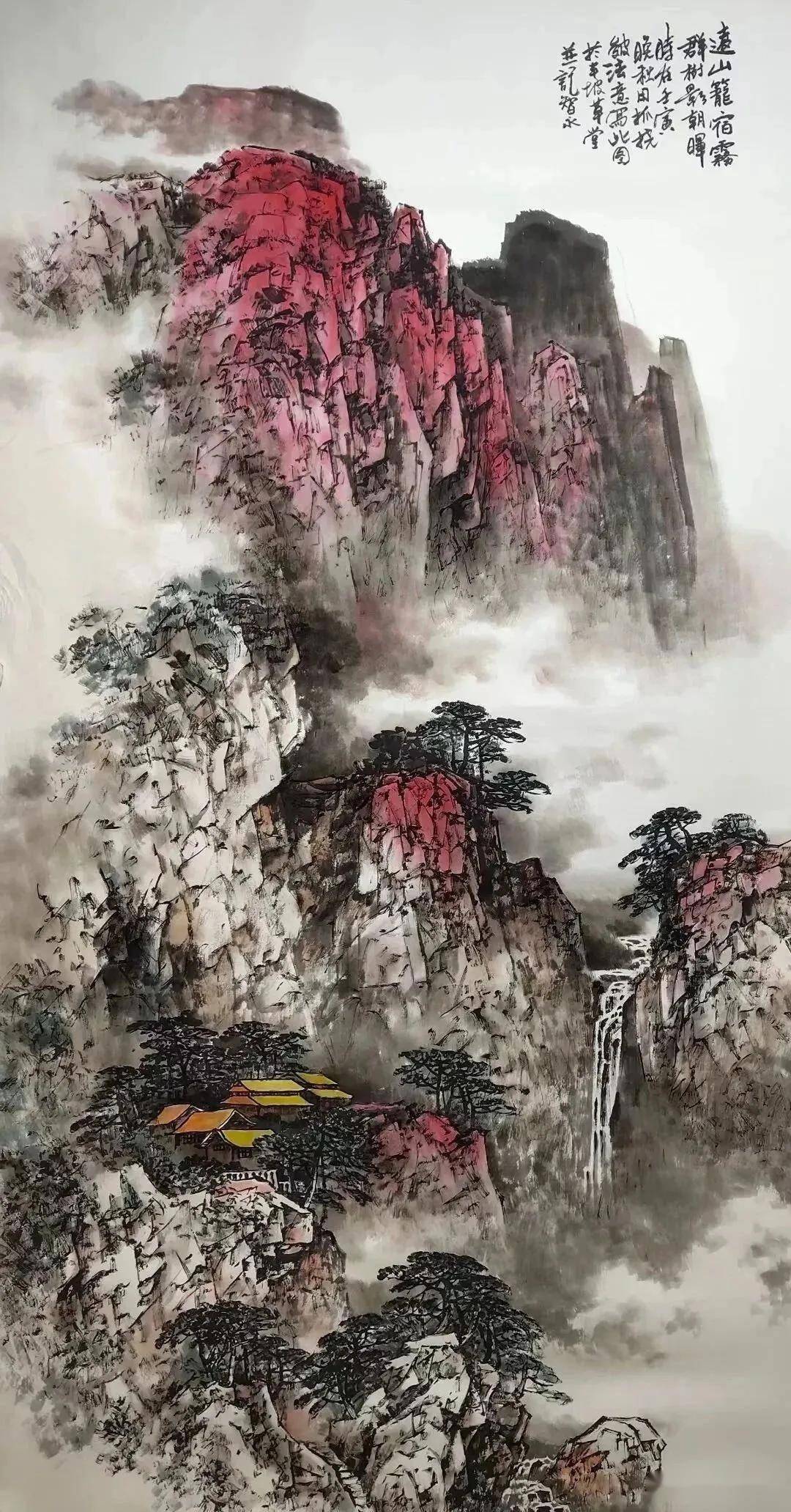 盖天地之灵秀,必假丹青以传;山水之精神,亦赖笔墨而显。观林智永先生山水五帧,或丹崖映日,或翠岫含烟,或飞泉漱玉,或古寺藏幽。其笔力遒劲,墨韵淋漓,于传统法度中自出新意,于咫尺画幅内吞吐大荒。余不揣浅陋,试逐帧品之,以抒胸臆。