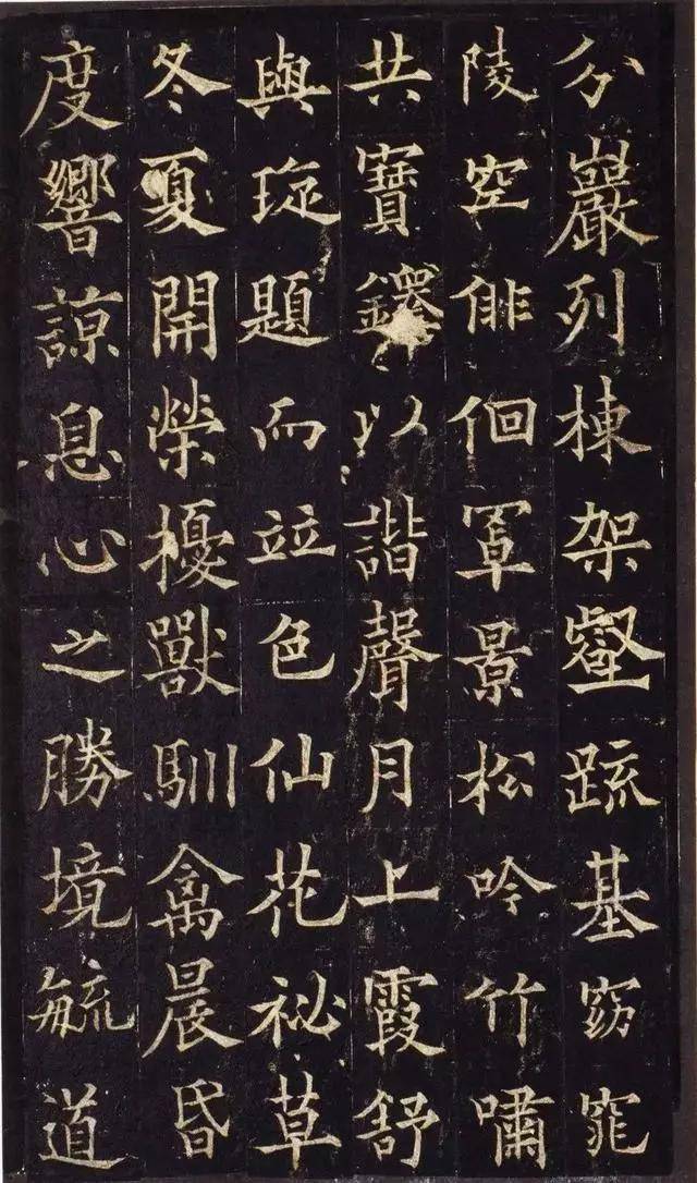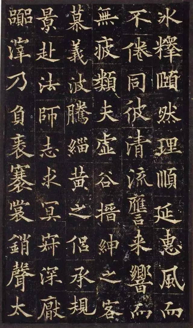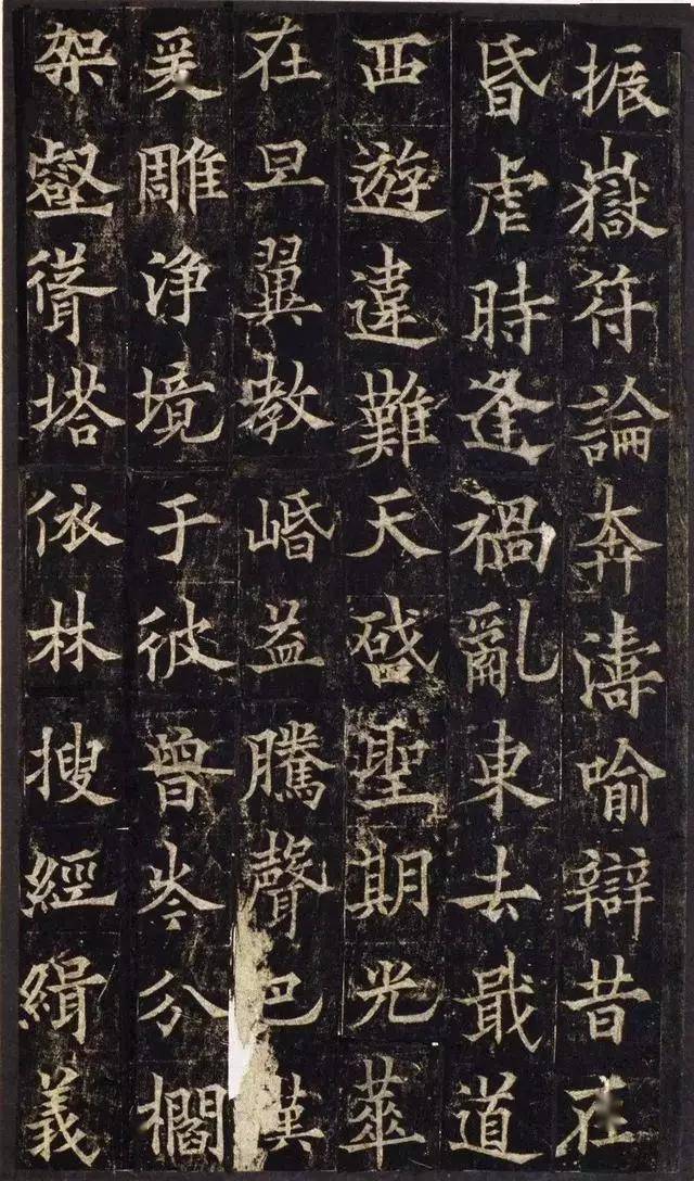 在结体上,此碑恪守欧体中宫紧缩、重心偏低的核心特点,字形多取扁宽横向之势,布白整饬有序,法度森严,却又在平正中暗藏奇变,结字雅正,取势多端,尽显初唐楷书的精妙。