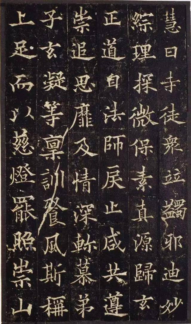 但是欧阳通所能传世的书迹却是寥寥无几,唯仅有两件碑刻完整留存于世,但就是如此,他的书法也是不容小觑,就单凭他的这件碑刻《道因法师碑》便可看出其书法功底之深厚,人们说他是将其父的“欧体”推向了险峻极致的另一高度。