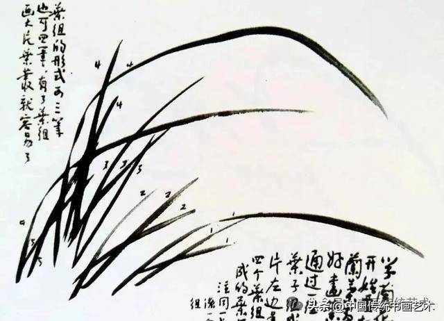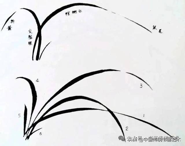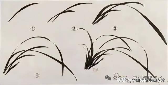 兰叶以“叶组”为单位构成大片,每组可三笔或四笔,通过交凤眼、破凤眼等手法实现虚实相生。熟练后需突破固定模式,追求自然组合。