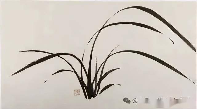兰叶绘制称“撇兰”,需悬肘运笔,线条轻便灵活,兼具遒劲与飘逸感。孙其峰强调“一笔长二笔短三笔破凤眼”的口诀,通过长短、粗细、刚柔的对比,避免叶叶相匀的呆板。