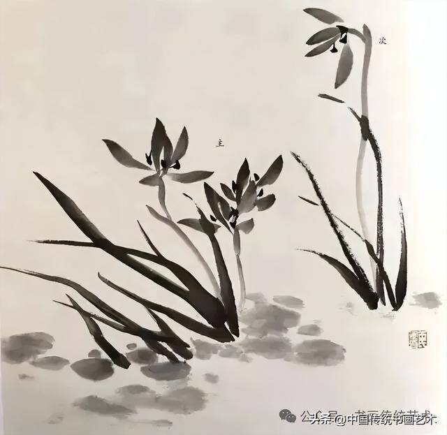 孙其峰先生的兰花课徒稿是其花鸟画教学体系中的经典内容,融合了传统笔墨精髓与个人教学智慧。以下从技法要点、构图法则及教学理念三方面进行系统梳理: