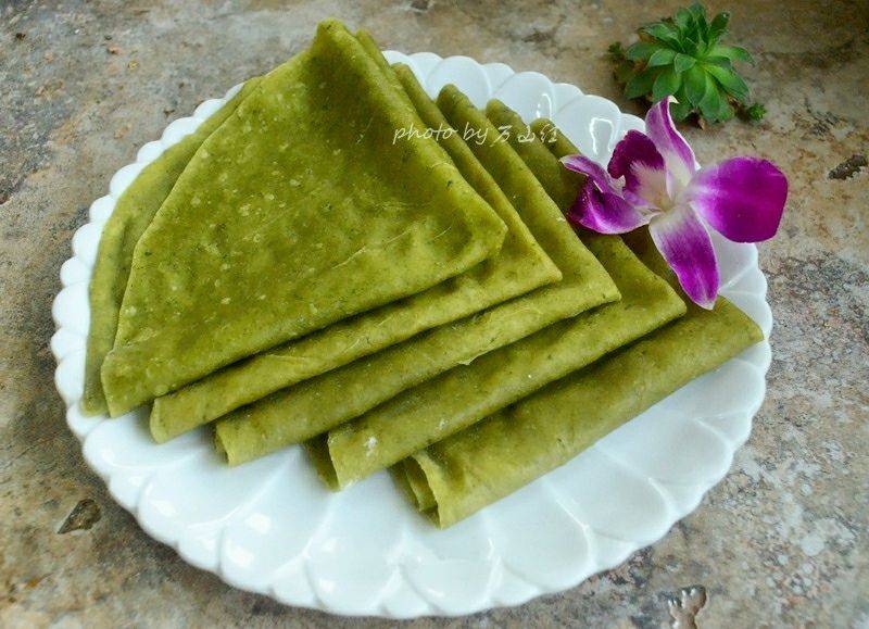 薄薄的荠菜春饼就做好了,卷菜吃更好吃哦