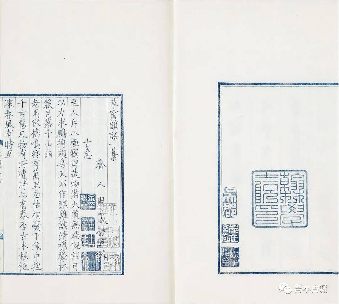 最后是艺术性。古代书籍雕版印刷,是现有书法名家手书,然后由刻工上板雕刻,因而每一部雕版书都是书法家和雕刻家通力协作完成的艺术品。比如宋代学者周密的《草窗韵语》,据称就周密手书上板,字迹之优美,直到八百年后著名书法家沈曾植见到之后,惊呼为“妖书”;学者叶昌炽呼其为“尤物”。元代有赵孟手书上板《道德宝章》。清代有王士禛撰《渔洋山人精华录》,康熙三十九年(1700)刻本,是由王渔洋门人、著名书法家林佶手书上板。此外清代康熙雍正年间的著名书画家扬州八怪之一金农,对北宋刻经情有独钟,就是看重这些经文文字大都出自北宋之时的高僧之手,书法古拙,极具感染力。