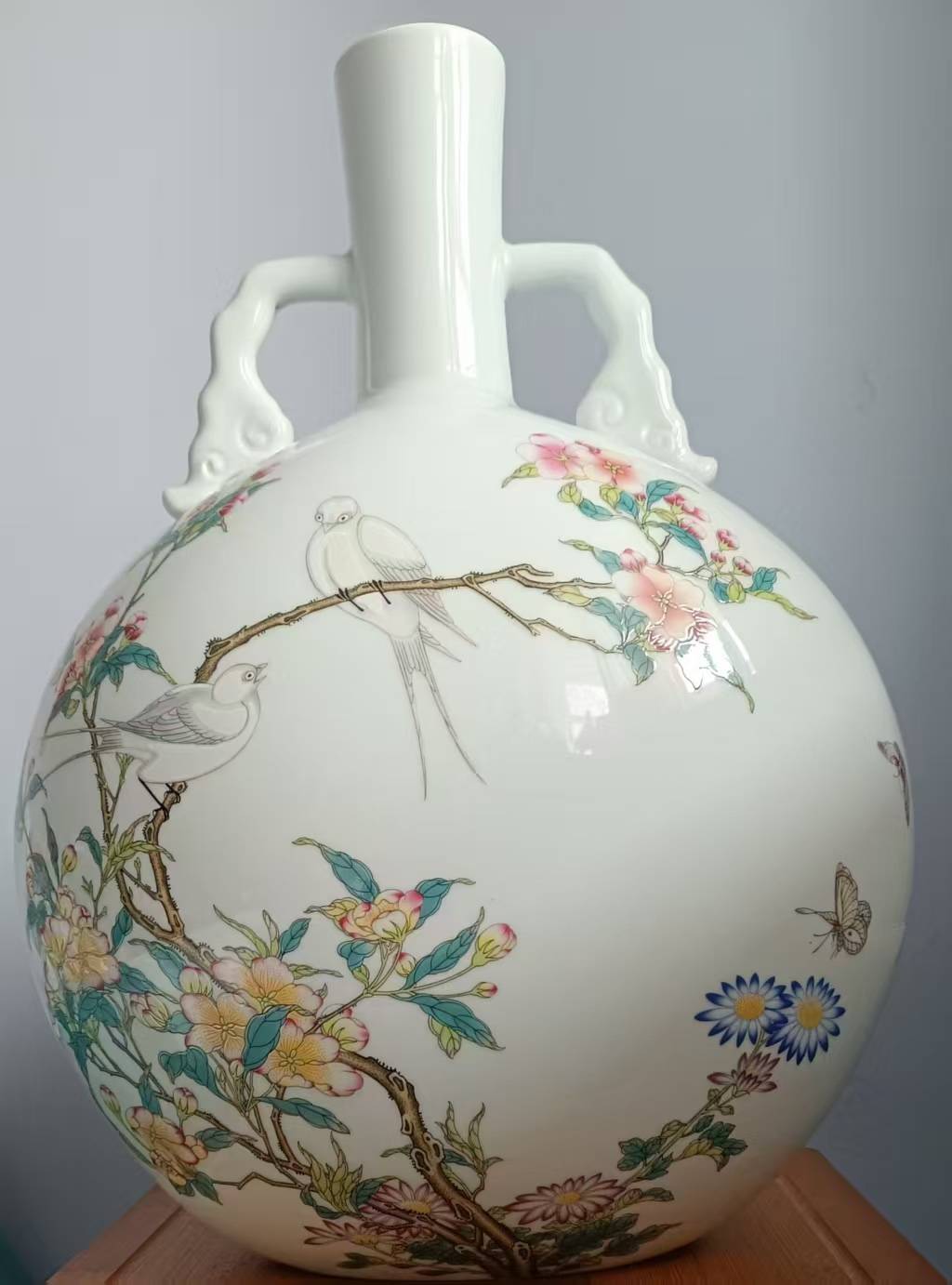 这对藏品——清雍正粉彩花鸟抱月瓶与清乾隆斗彩花卉贯耳瓶,不仅是清代瓷器中的佼佼者,更是中国瓷器艺术宝库中的璀璨明珠。它们各自承载着丰富的历史文化信息,展现着不同时期瓷器艺术的独特魅力,同时在收藏价值与升值空间上也展现出非凡的潜力。一、历史背景清雍正粉彩花鸟抱月瓶清雍正时期的粉彩瓷器,是中国瓷器艺术中的一朵奇葩。粉彩,又称“软彩”,是在珐琅彩的基础上,通过引进铜胎珐琅彩料中的“玻璃白”物质,使颜色有了过渡,画出的图案出现浓淡凹凸的变化,看起来极为生动。雍正粉彩花鸟抱月瓶,正是这一时期的代表作品。其造型独特,扁圆腹、椭圆形圈足,腹部两侧各有一胫耳,形似抱月,故而得名。瓶身以粉彩绘有花鸟图案,色彩柔和细腻,笔触纤细秀雅,展现出雍正时期瓷器艺术的精致与典雅。在雍正时期,粉彩瓷器的制作达到了极高的水平。这得益于当时严格的官窑管理制度和精湛的工艺技术。据记载,雍正皇帝对瓷器艺术有着极高的热情和追求,他亲自过问瓷器制作,对造型、图案、色彩等方面都提出了极高的要求。这种自上而下的重视,推动了粉彩瓷器艺术的快速发展和不断创新。清乾隆斗彩花卉贯耳瓶斗彩,又称逗彩,是釉下青花和釉上彩色相结合的彩色瓷工艺,在明代一般称为青花五彩。清代后,各色彩料运用于一道描绘图案,彩色之间有逗润而名“斗彩”。清乾隆时期的斗彩瓷器,以其色彩鲜艳、画面繁复、工艺精湛而著称。乾隆斗彩花卉贯耳瓶,是这一时期的典型代表。其造型端庄大方,瓶身以斗彩绘有花卉图案,色彩丰富多样,画面布局疏密有致。贯耳的设计,不仅增加了瓶子的实用性,更增添了其艺术美感。乾隆时期,是中国瓷器艺术发展的又一个高峰。这一时期,瓷器制作工艺达到了前所未有的高度,无论是造型、图案还是色彩,都展现出了极高的艺术水平。同时,乾隆皇帝对瓷器的热爱和追求,也推动了瓷器艺术的不断创新和发展。他提倡仿古、复古之风,使得许多古代瓷器的造型和图案在乾隆时期得到了重新诠释和发扬。