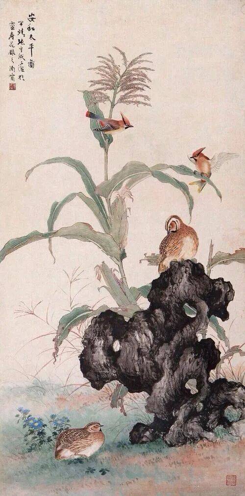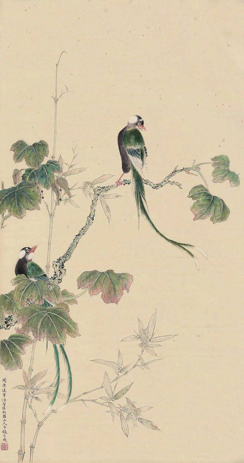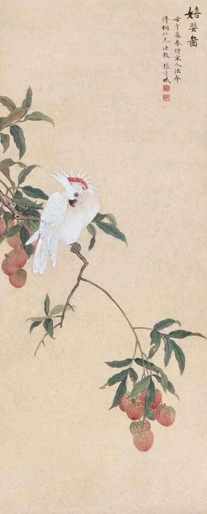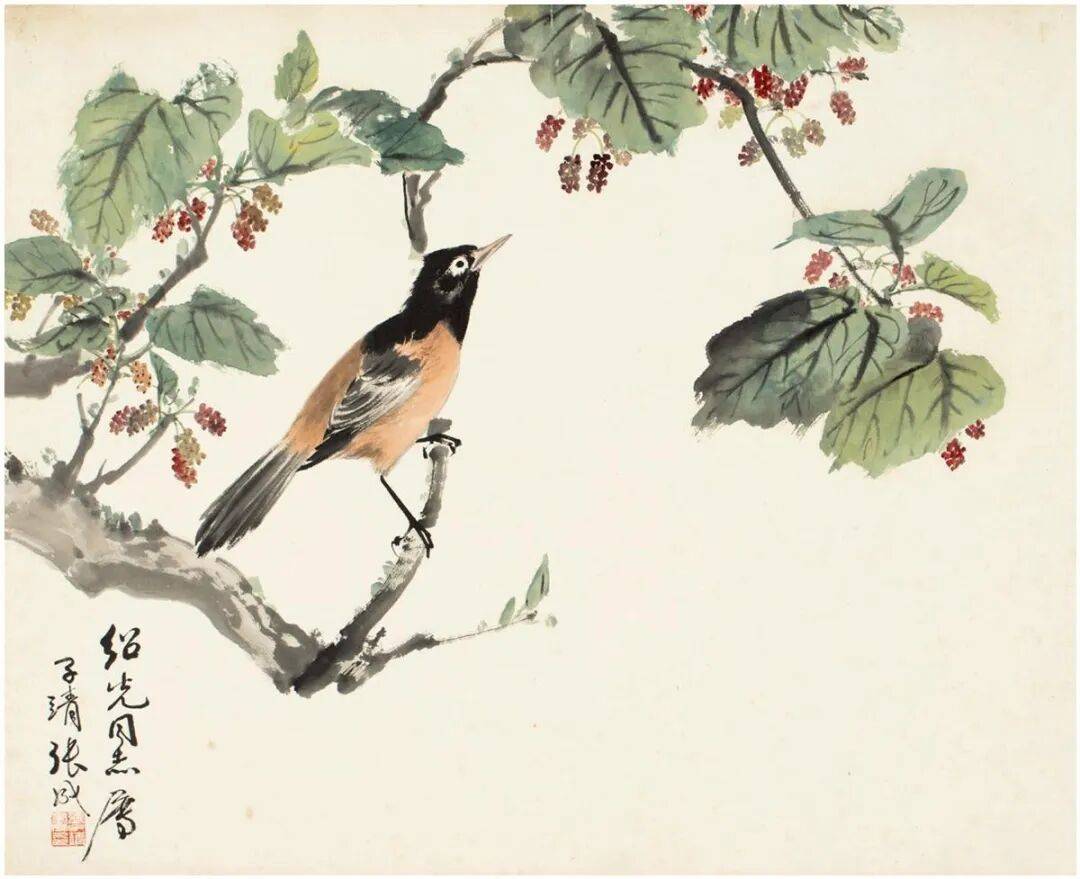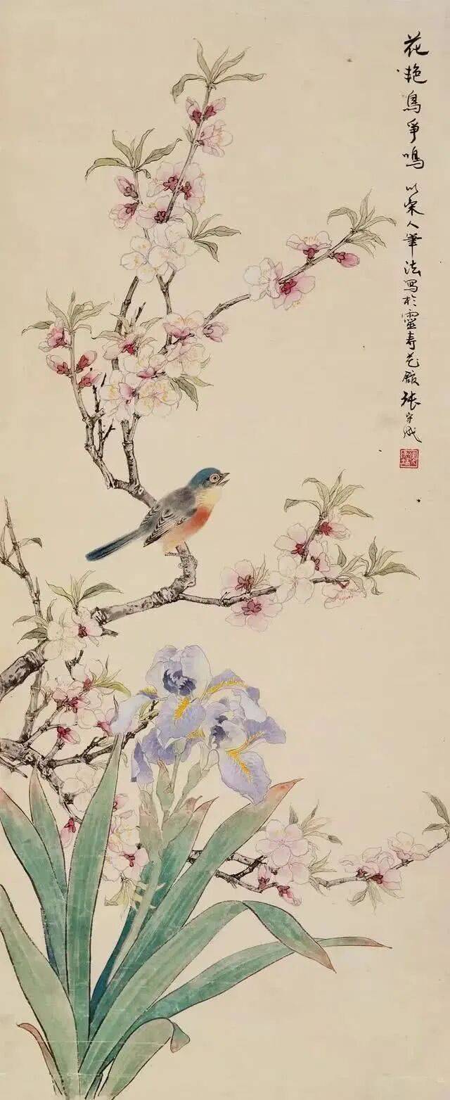 他的花鸟作品出入于宋人笔情墨韵之间