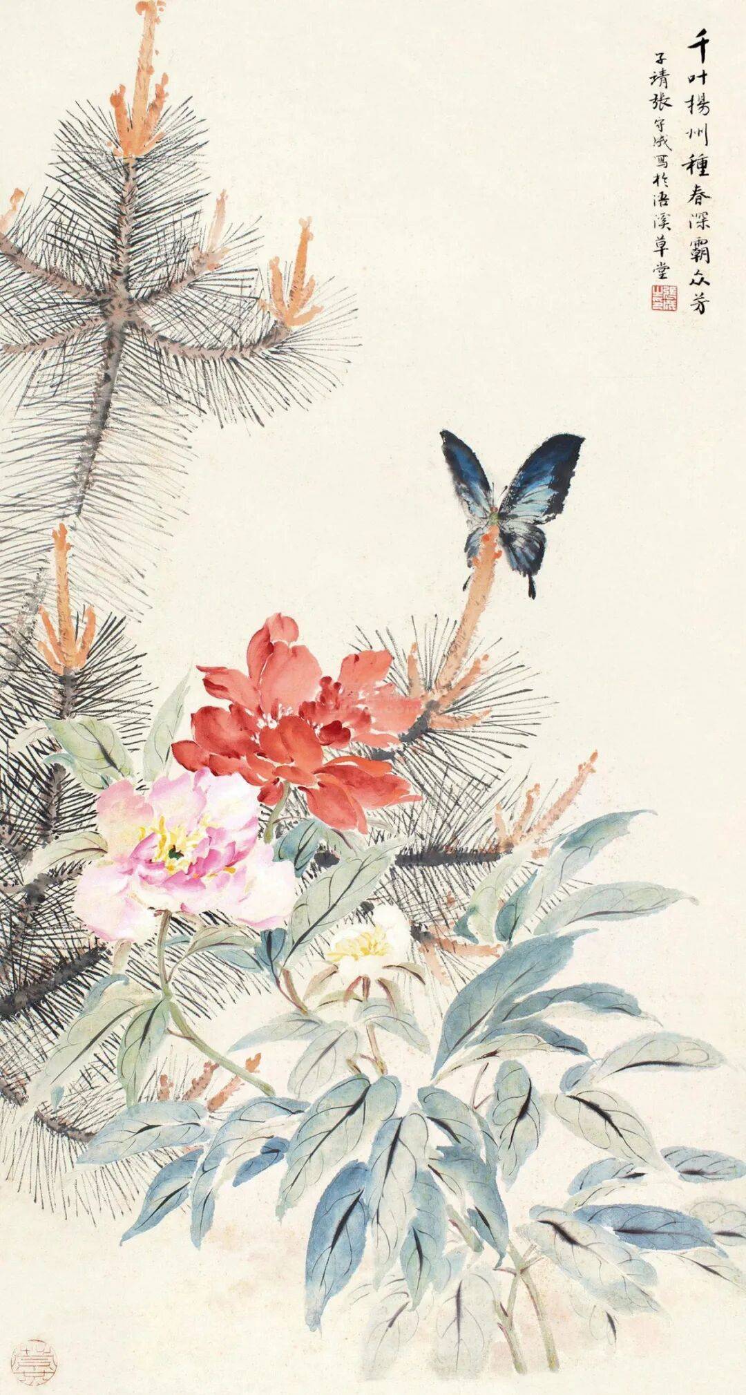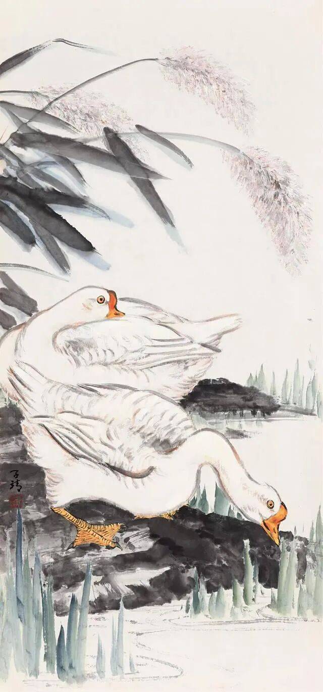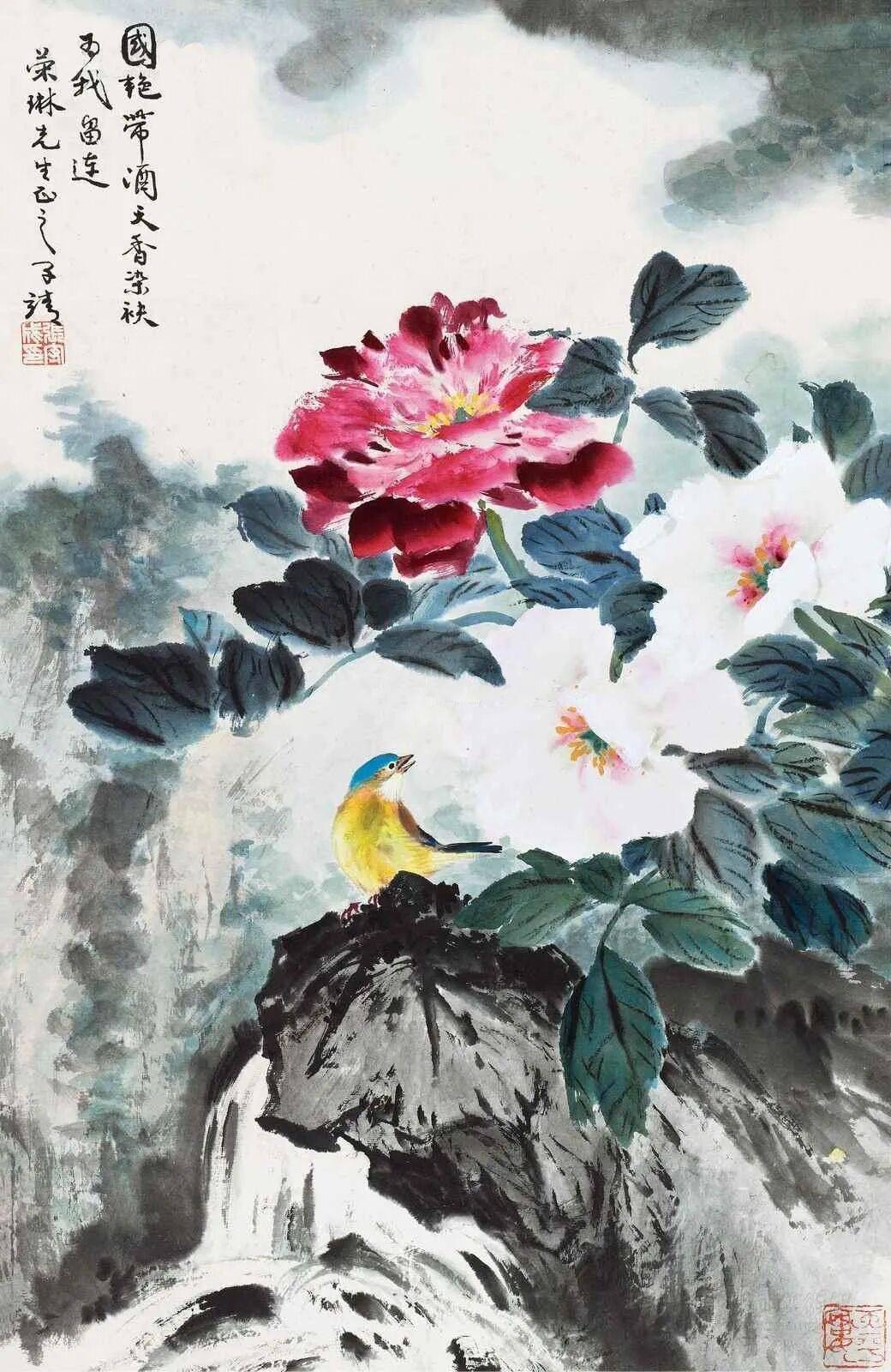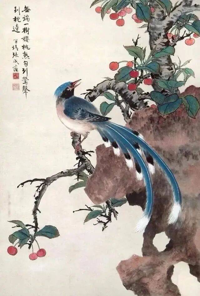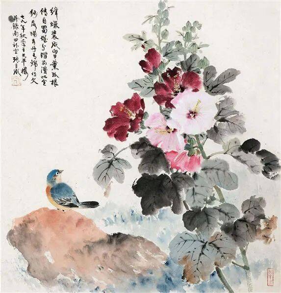他的花鸟作品出入于宋人笔情墨韵之间