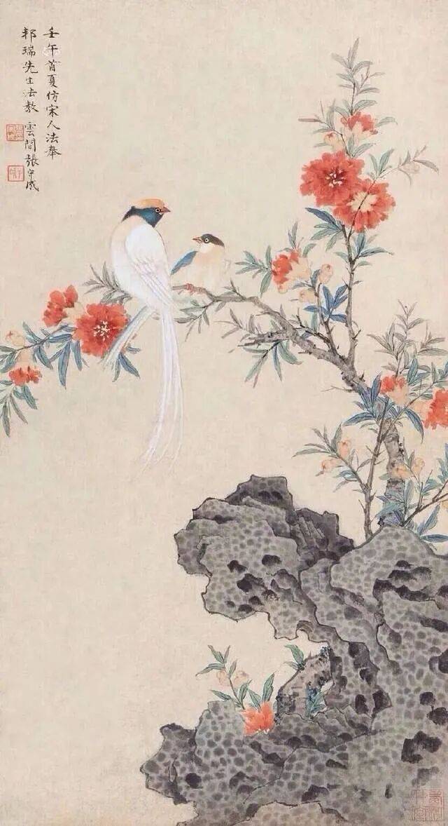 张守成晚年的花鸟画成就,尤得益于其早年在宋元工笔花鸟方面的笔耕墨耘。他师从吴湖帆,花鸟直追宋元工笔,作品出入于宋人笔情墨韵之间,描绘工整细腻,设色清新雅致,古香古色,深得宋人花鸟之精髓。