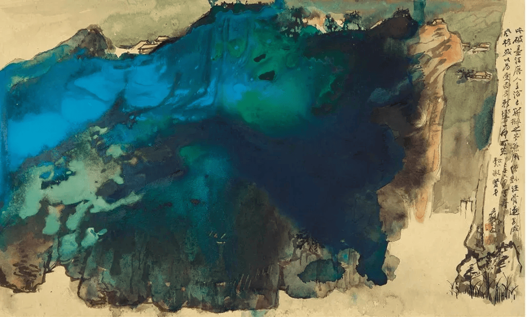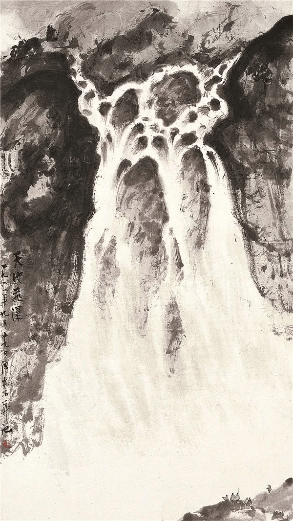 “漫将一砚梨花雨,泼湿黄山几段云”,近现代的国画大师张大千先生,他独擅泼墨泼彩山水画,他把泼墨泼彩发挥的浑化自然,有一种妙合天然的神秘境界,更是达到墨色淋漓幛犹湿的艺术效果。