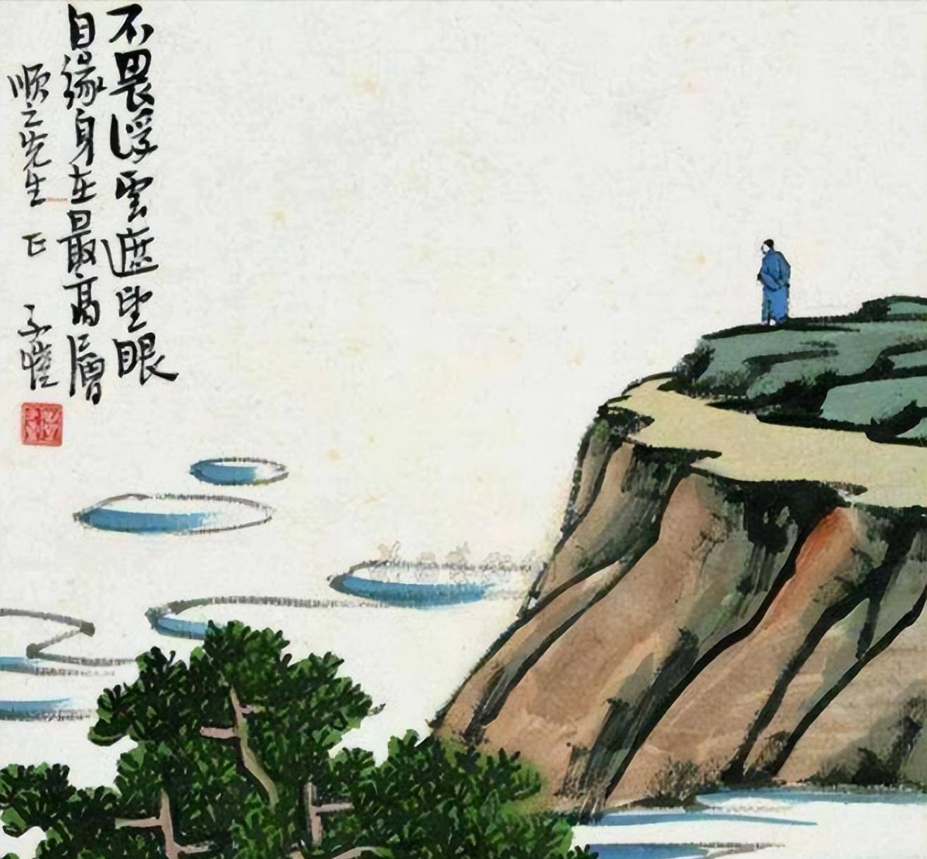 斗志满满的王安石,其诗《登飞来峰》在我们初高中皆有所学: 飞来山上千寻塔,闻说鸡鸣见日升。 不畏浮云遮望眼,自缘身在最高层。 这首诗作于王安石29岁返乡任满之时,前两句写所见,后两句借景抒志。诗意浅显:飞来峰上的高塔,鸡鸣时可见旭日初升;不怕浮云遮眼,只因身在最高层。诗人暗示自己立足之高,志向之远。王安石当时因才学及欧阳修推荐得以留京,但他选择推辞。地方任官期间,他深受百姓爱戴,前途光明;借旭日东升,表达胸中壮志。浮云象征古代奸佞之人,诗句亦显示他不惧风雨、勇往直前的精神。