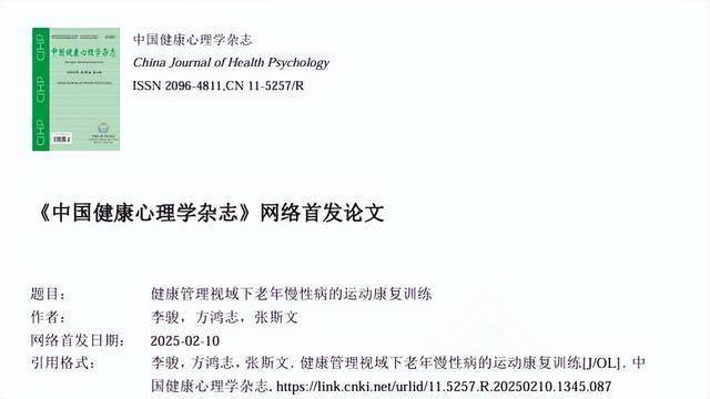 李骏.健康管理视域下老年慢性病的运动康复训练,中国健康心理学杂志,2025-02-10