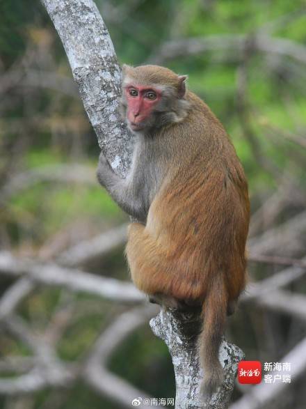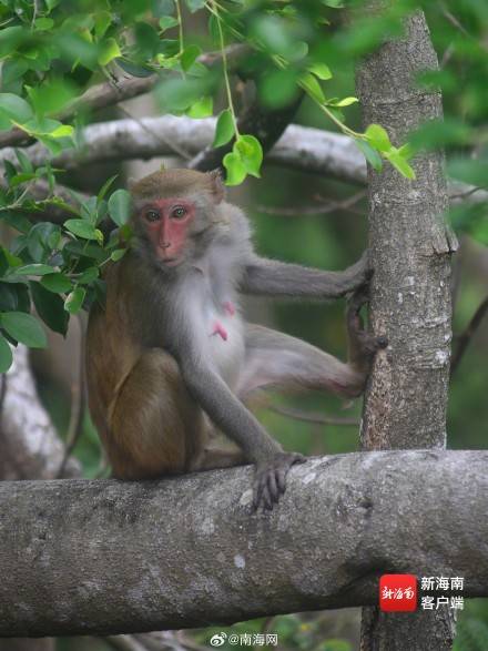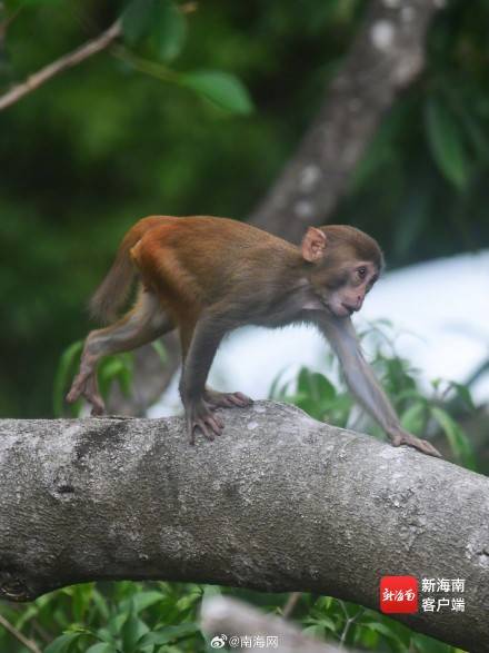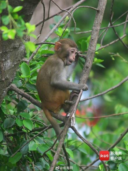三亚:春暖花开 猕猴在雨林中玩耍