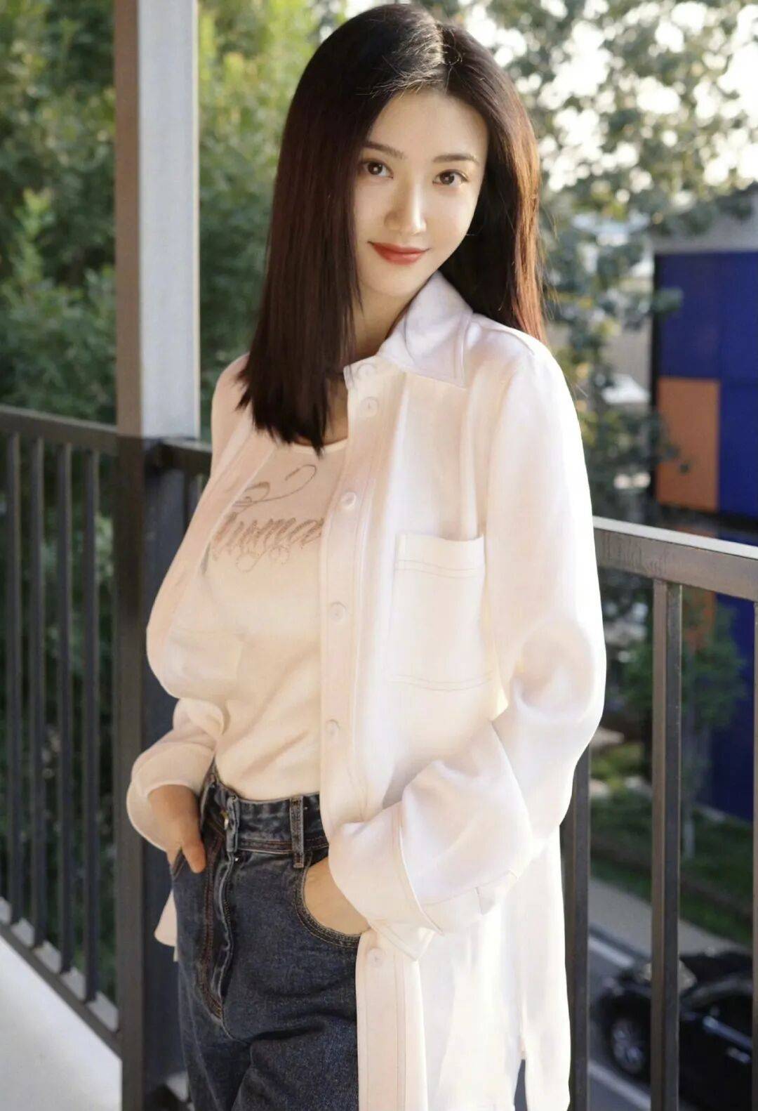 时尚日常,景甜生活照封神,白衬衣牛仔裤气质拉满