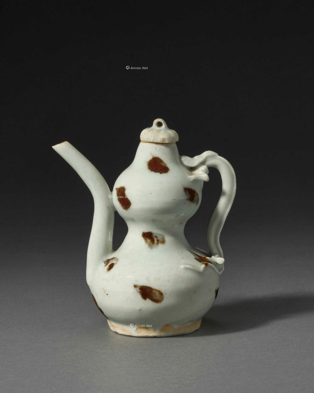 元十四世纪早至中期 青白釉褐斑葫芦式执壶及盖