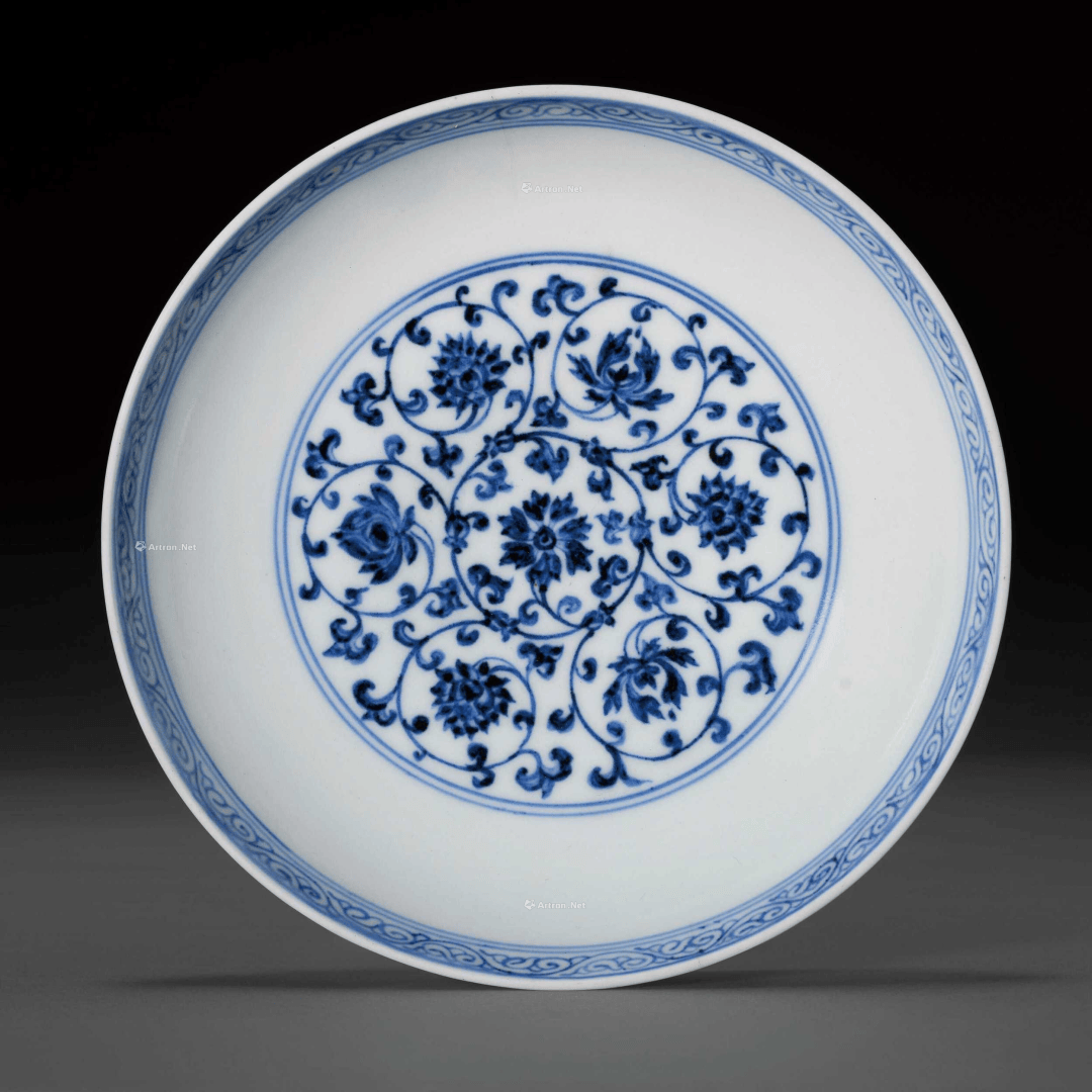 明宣德 青花缠枝花卉纹盘 双圈六字楷书款