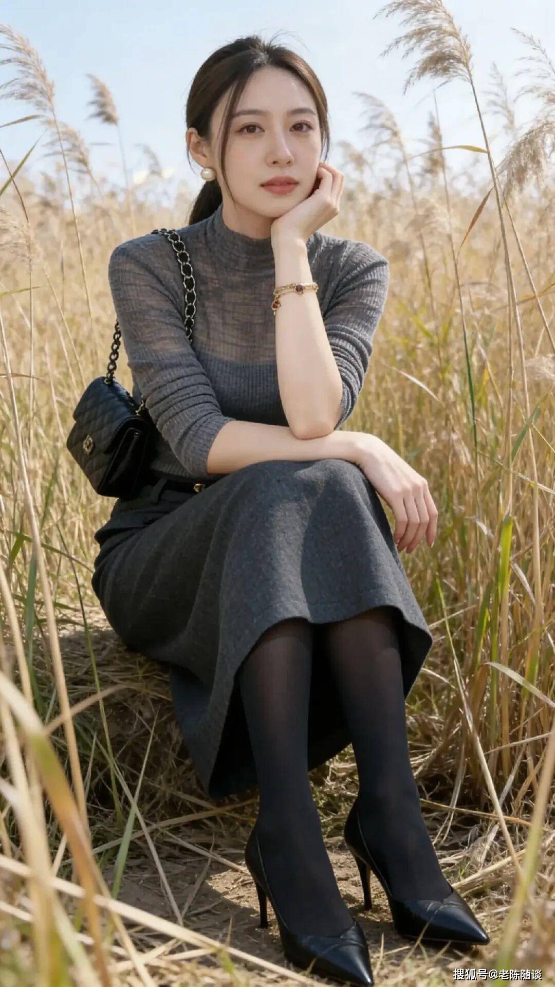 第二个动作:坐姿搭腿,腰背挺直。坐姿最容易显胖,重点是“不瘫坐、不夹腿”。选择有靠背的椅子,只坐椅子的三分之一,腰背挺直但不僵硬,上半身微微前倾,显精神又不压个子。双腿交叉搭放,小腿尽量并拢,脚尖微微踮起,双手可放在膝盖上,或一只手搭在椅背上,另一只手自然放在腿间,避免含胸驼背,轻松拍出优雅大方的坐姿照。