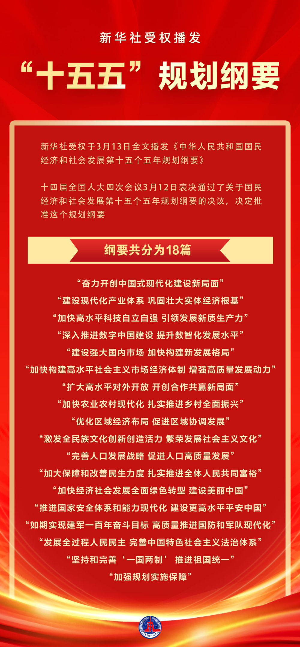 2026年全国两会胜利闭幕。十四届全国人大四次会议批准《中华人民共和国国民经济和社会发展第十五个五年规划纲要》,党的主张通过法定程序转化为国家意志和全体人民的共同行动。中国式现代化建设新征程上,一幅锚定强国建设、民族复兴目标的宏伟蓝图正徐徐铺展,奋进号角响彻神州大地。
