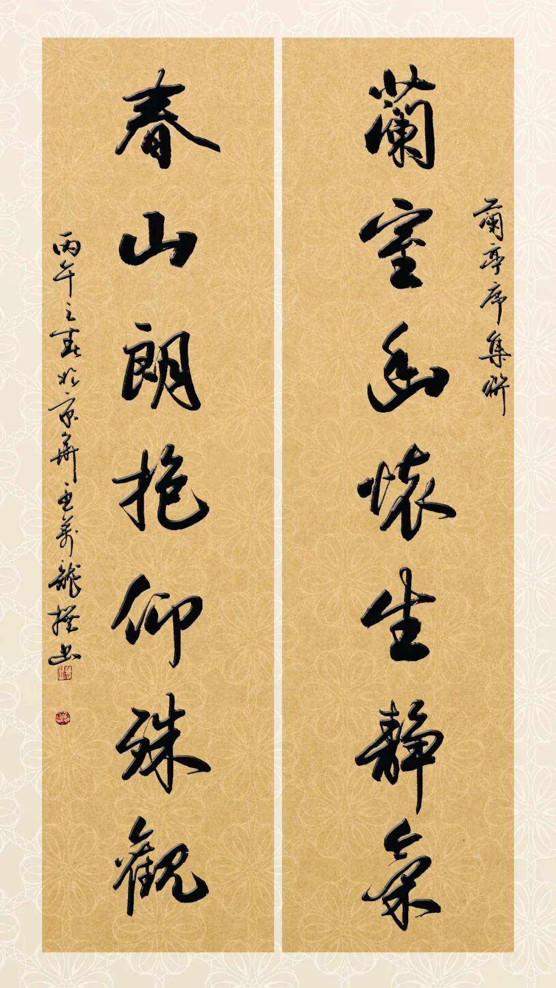 纵观全联,无一字雕琢,无一句浮华,却以极简的意象,写尽文人的精神世界。兰室之幽、春山之朗,静气之柔、殊观之壮,交织成一幅动静结合、内外兼修的精神画卷。它不仅是一副文字优美的对联,更是一种生活态度的写照,一种人格理想的寄托,让人在品读中获得心灵的宁静与胸襟的开阔。