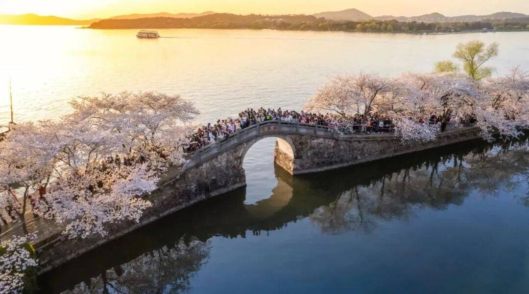景区在樱花品种和布局上持续发力,新增了晚樱品种,延长了花期,并打造了万浪桥1.5公里的湖岸线樱林,让樱花与园林的景致更和谐相融。