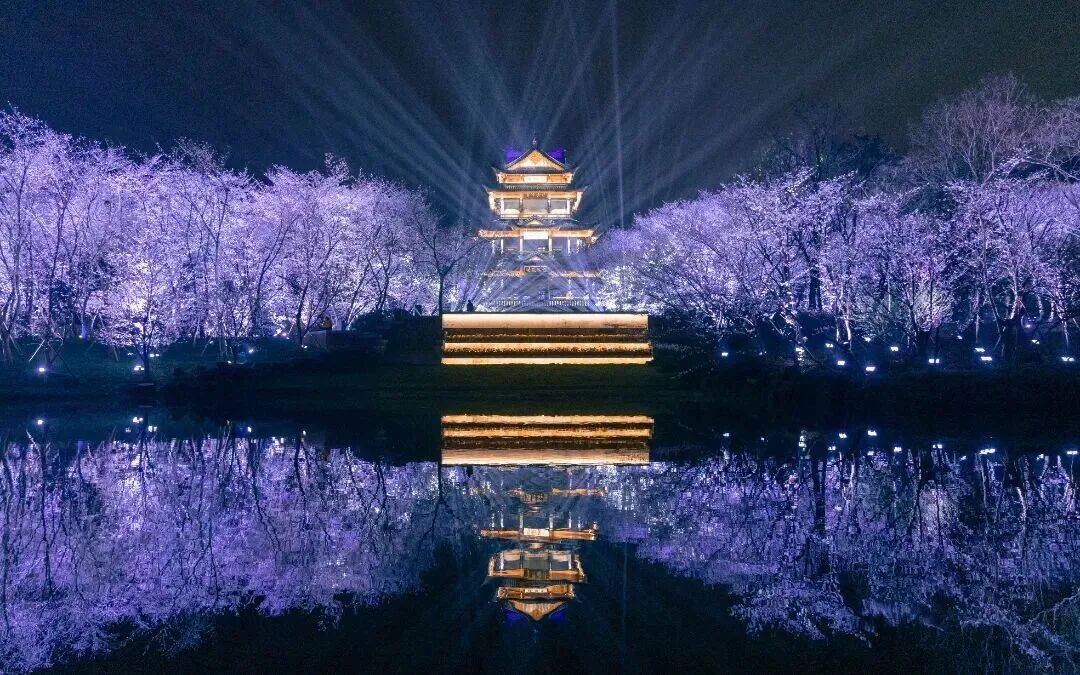 从早到晚,全天候沉浸:白天的樱花明媚通透;当夜色降临,灯光亮起,樱花变得朦胧梦幻,配合太湖光影音乐会、机甲炫舞等活动,瞬间从古典园林穿越到未来世界。