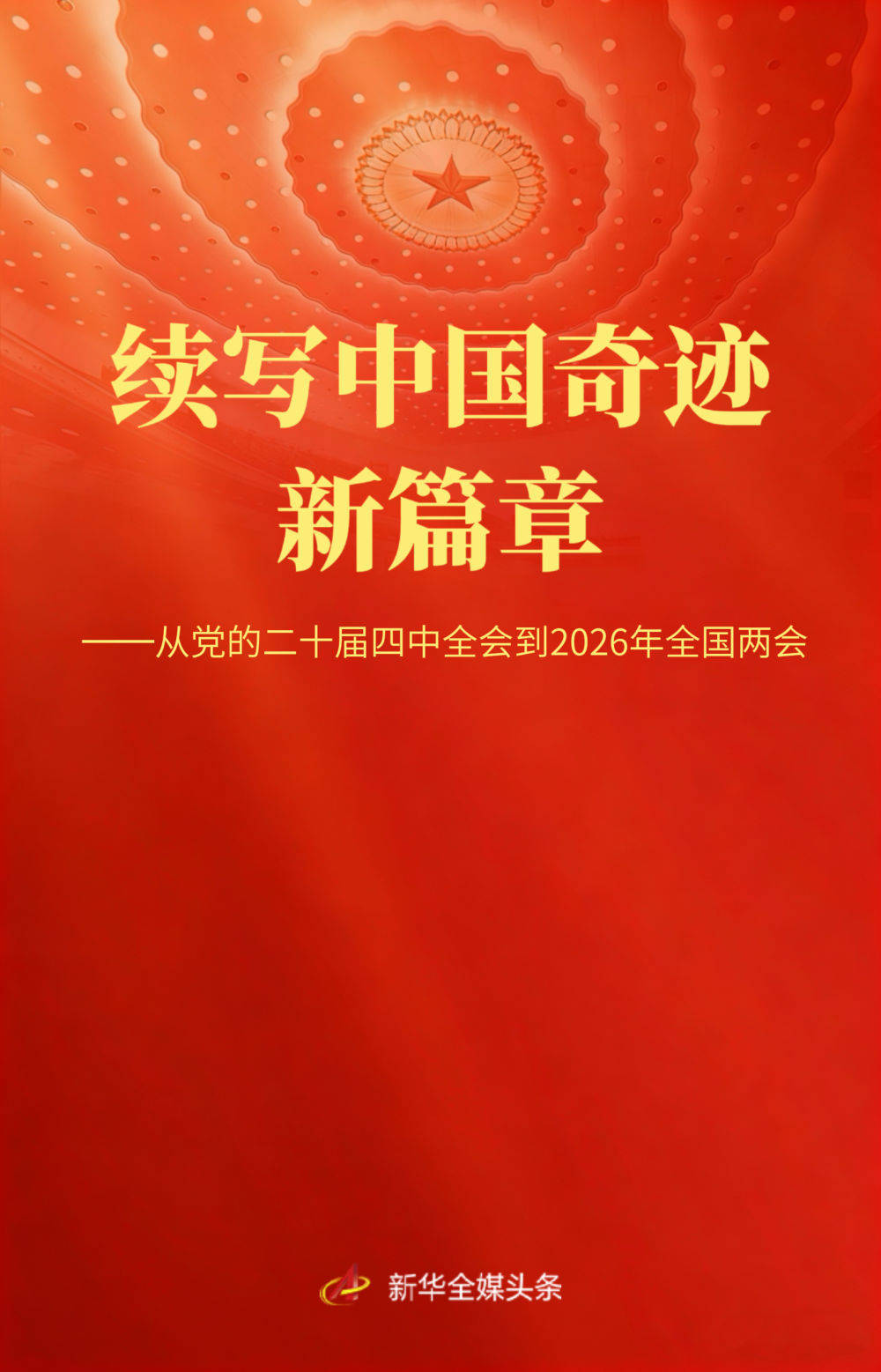 原标题:续写中国奇迹新篇章——从党的二十届四中全会到2026年全国两会
