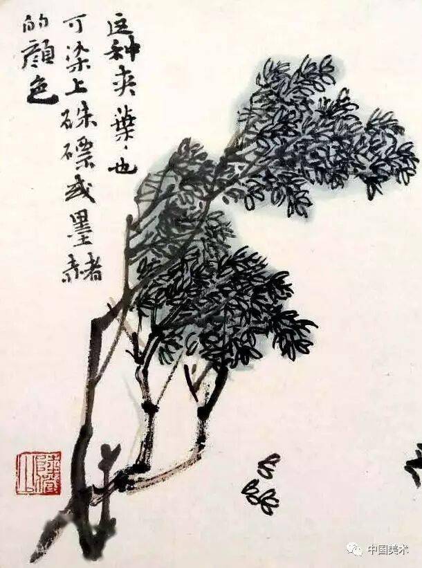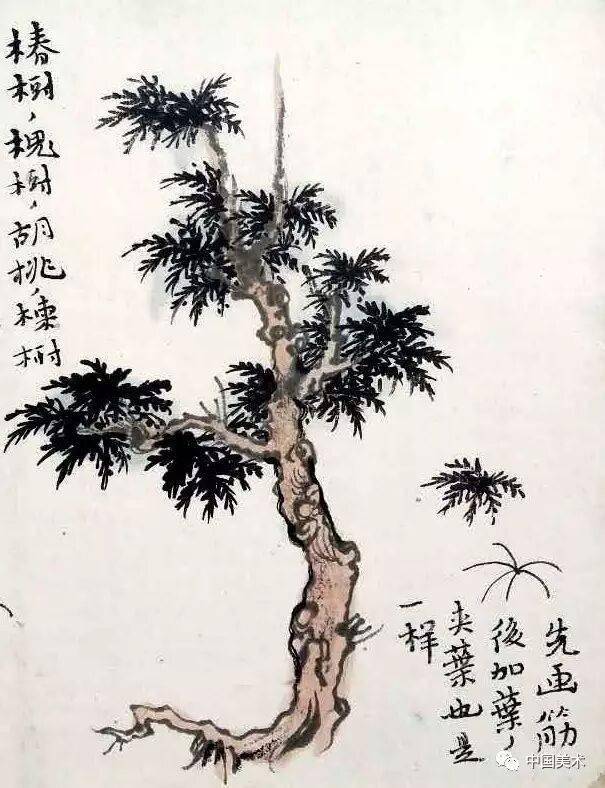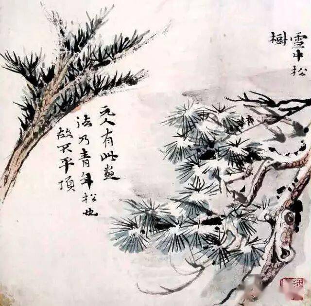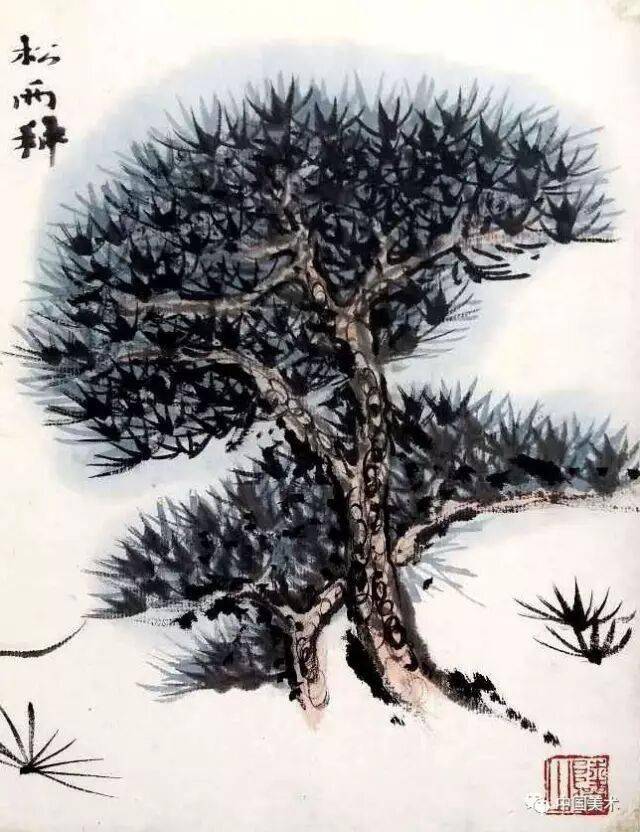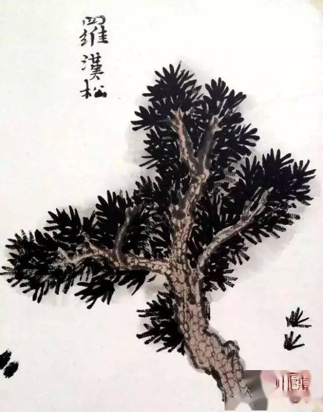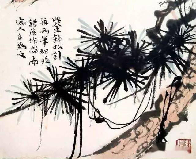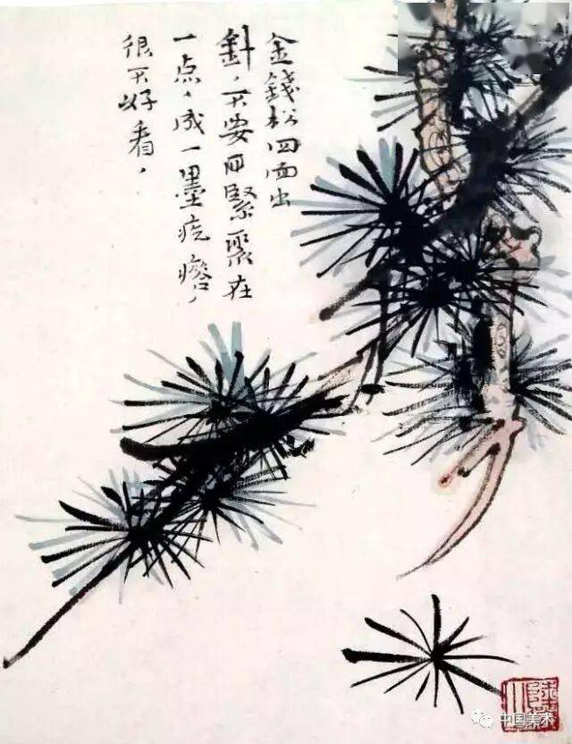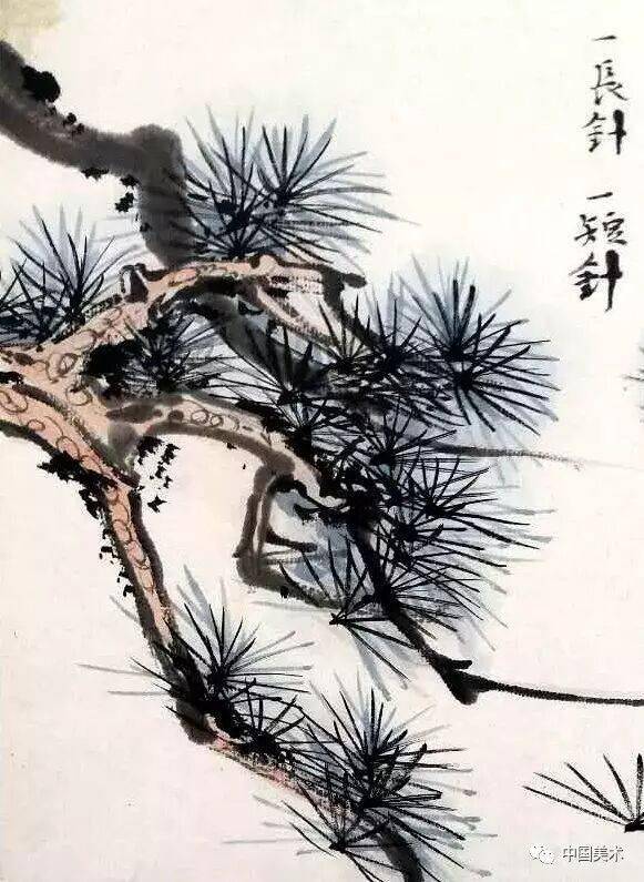 这是枝干,用粗壮的重笔,松针纤细劲挺,以见轻重变化,免于平板。