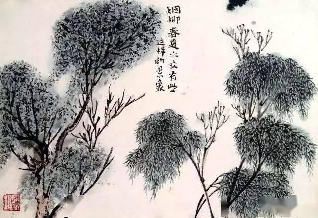 这两种柳树,也有画好柳丝之后,用汁绿画叶子。也有再在汁绿之上再用石绿破。