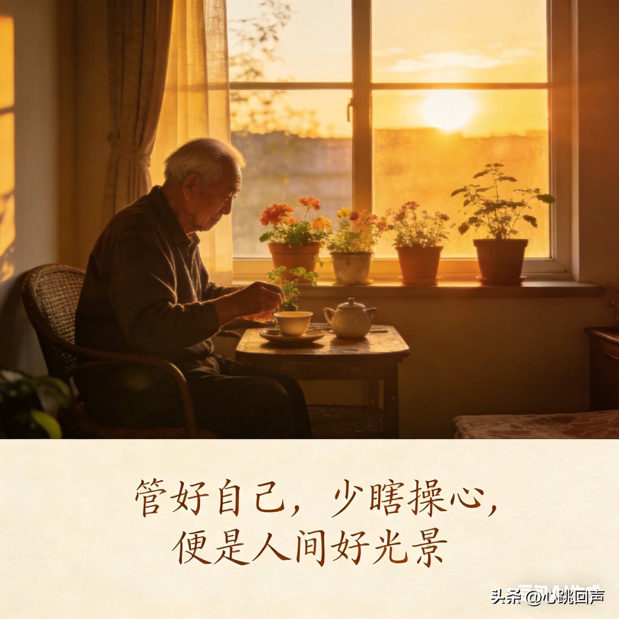 不必为子女的人生过度内耗,不必为父母的岁月无端焦虑,看淡聚散、放下执念,少管闲事、少瞎操心。好好保养身体,养好心态,三餐规律、作息安稳;好好经营自己的小日子,培养爱好、知足常乐,不攀比、不纠结。