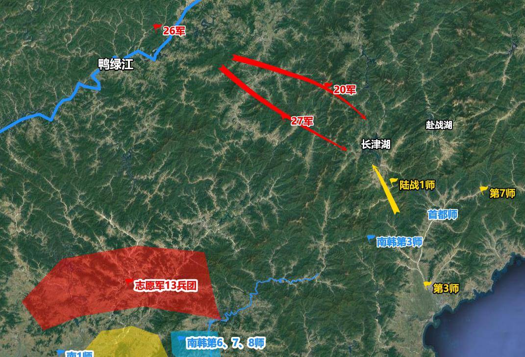 在严酷的寒冬中,9兵团的任务是阻击联合国军在东线的进攻。美军的陆战1师、步兵3师、7师,以及韩军的第3师和首都师部署在东线,意图配合西线的第8集团军夹击志愿军。志愿军并没有暴露行踪,美军仍未察觉到在长津湖的山区,志愿军第9兵团的20军和27军已经悄然部署,等待着美军王牌陆战一师的到来。