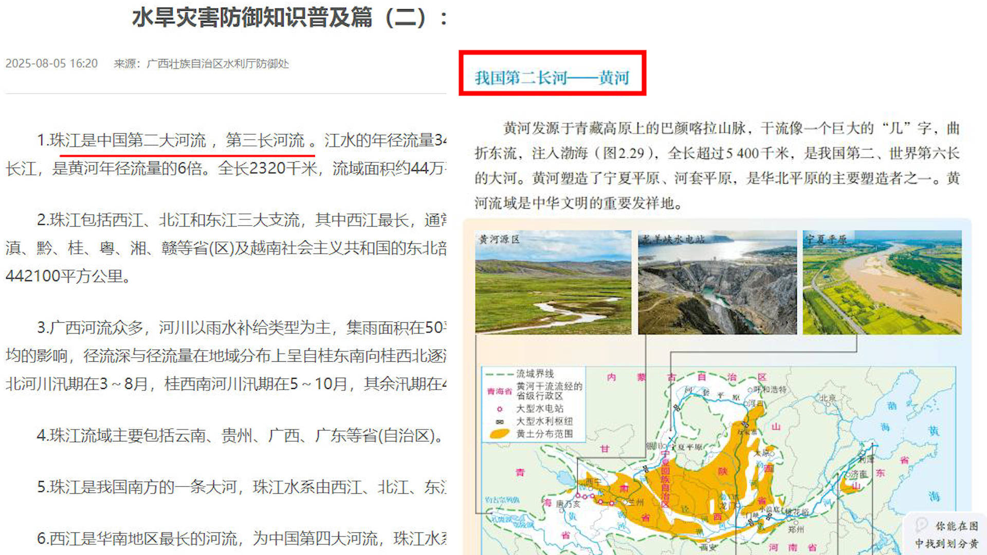 那我们不妨来看看教材上的解答,根据新版八年级地理上册来看,河流与湖泊章节中提到了长江是我国第一大河,而黄河则是我国第二“长河”,并根据地方水利厅资料显示,珠江是中国第二大河流、第三长河流。那珠江凭什么是我国第二大河呢?