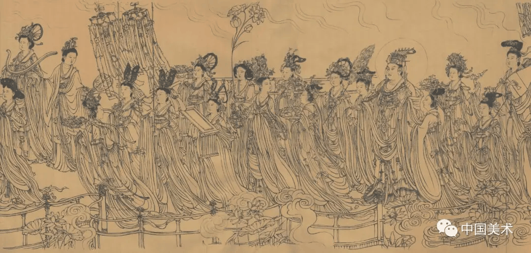 ▲《送子天王图》 纵35.5厘米,横338.1厘米