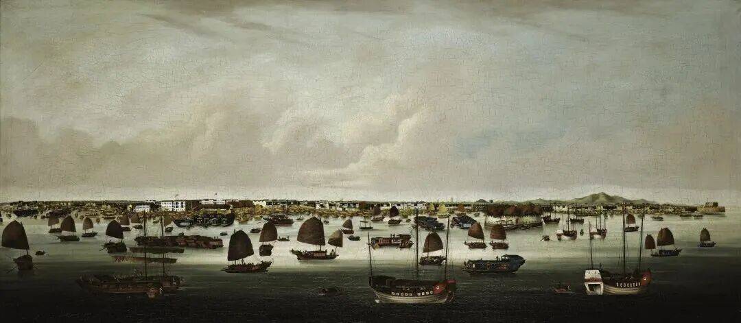 ▲广州港全景图(约1845年)。(图片来源:广东省博物馆藏)
