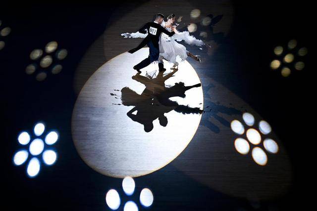 2025年8月9日,摩尔多瓦组合阿纳斯塔西娅(右)/格卢霍夫在成都世运会体育舞蹈标准舞决赛中。最终,他们获得冠军。新华社记者 杜子璇 摄